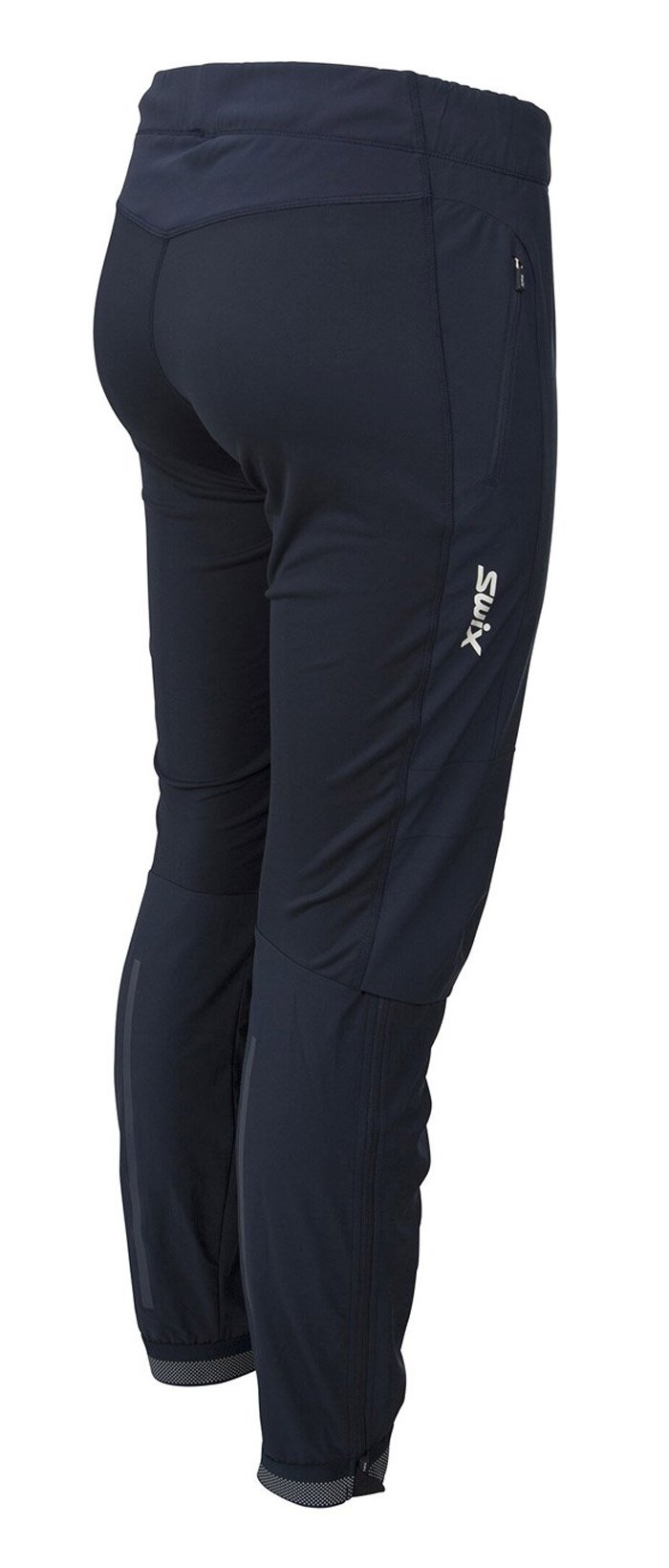 Мембранная ткань, расположенная во фронтальной части изделия, защищает квадрицепс и голень от порывов холодного ветра и не пропускает дождь и мокрый снег.