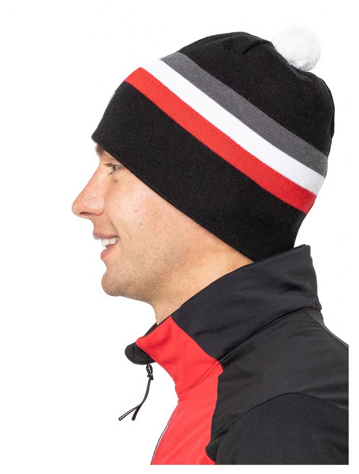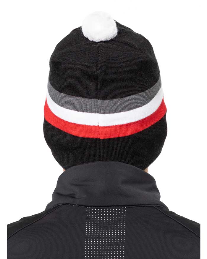 Традиционный дизайн с помпоном и контрастными полосами делает шапку стильным аксессуаром как для повседневного использования, так и для занятий спортом. Эластичные волокна обеспечивают удобную посадку. Аккуратный фирменный шильдик спереди придает изделию завершенный и узнаваемый вид.