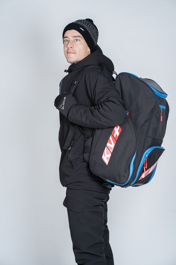 Рюкзак располагает вместительным центральным отделением для вещей и двумя боковыми отсеками с удобным доступом для ботинок. В переднем накладном кармане на молнии удобно хранить мази и инструменты, а в дополнительном кармане на передней панели документы и карточки. Усиленное дно держит форму. Плечевые ремни регулируются по размеру. Благодаря продуманному крою рюкзак не стесняет движения.