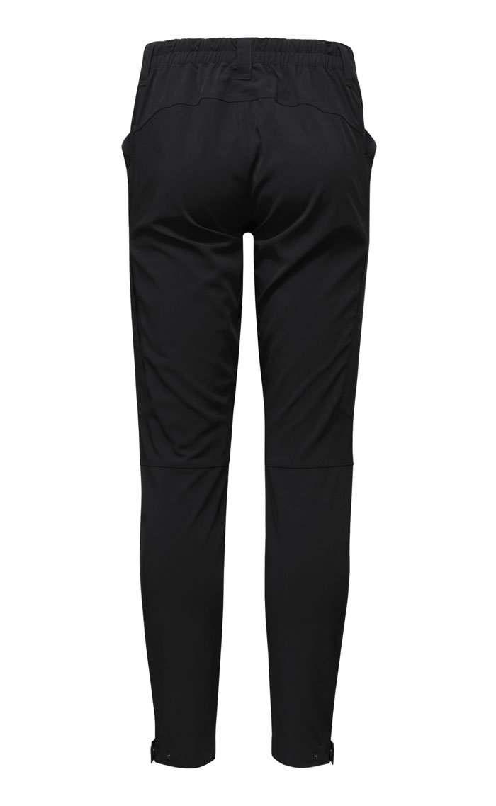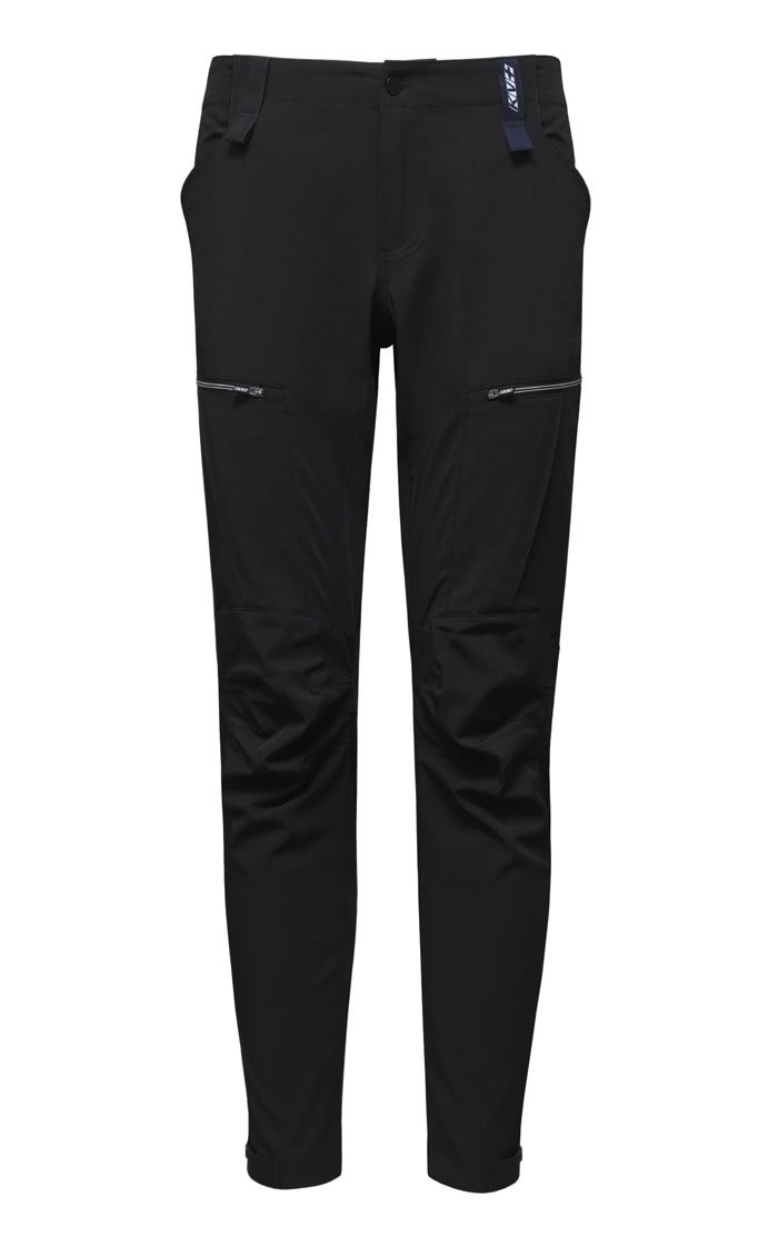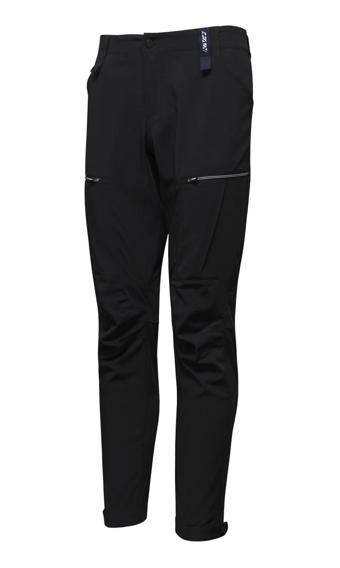Пояс оборудован шлевками, чтобы брюки можно было носить с ремнем. Формованные колени имеют анатомический крой для максимального комфорта во время выполнения амплитудных движений. По бокам предусмотрены два открытых кармана для хранения мелочей, ниже на бедрах располагаются еще два вместительных кармана на молниях. Внизу штанин имеются хлястики на кнопке, позволяющие заузить брючины или оставить их свободными.