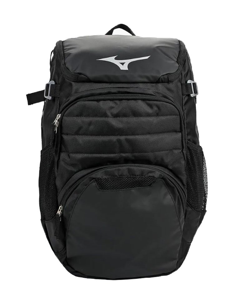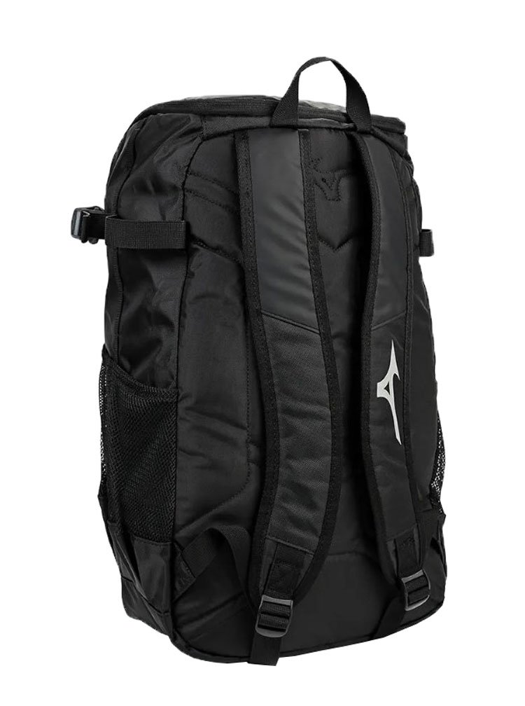 Предусмотрено нижнее отделение для хранения мяча или кроссовок. Внутри находится крючок для вертикального хранения, карман под ноутбук 15". На рюкзаке располагаются светоотражающие детали в виде логотипа Mizuno.