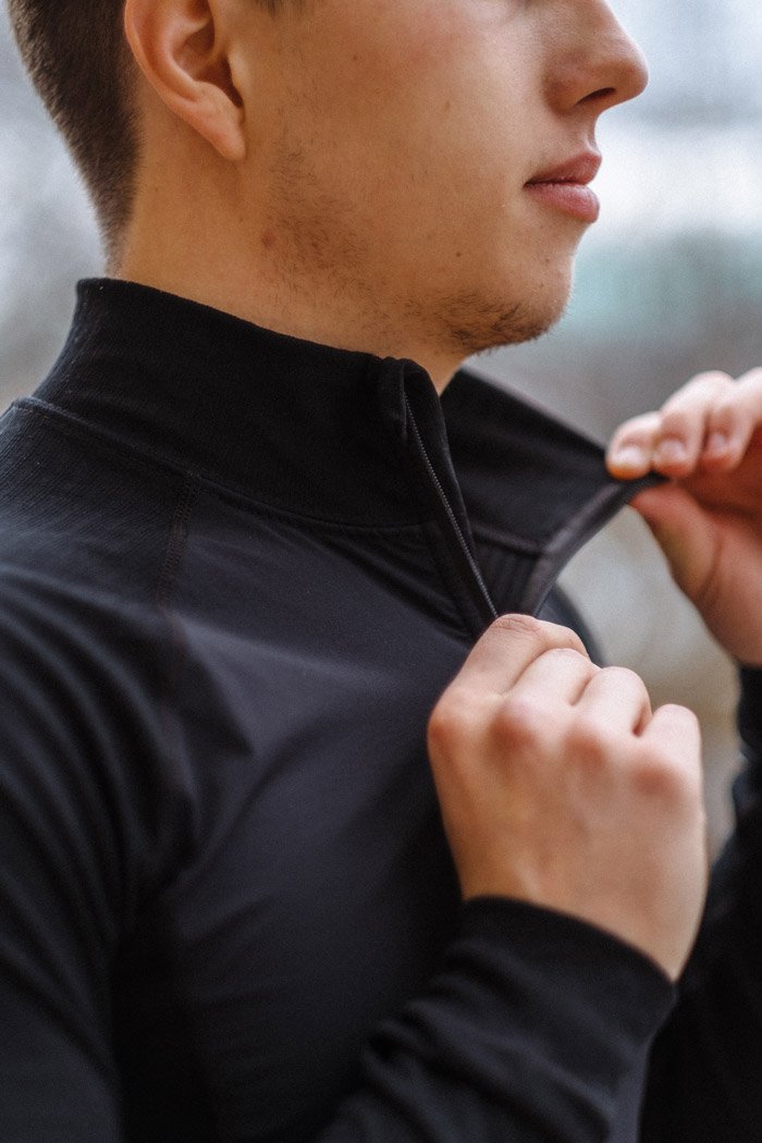 Кофта имеет легкий вес и быстро сохнет. Молния на воротнике для дополнительной вентиляции. Плоские швы не натирают кожу.