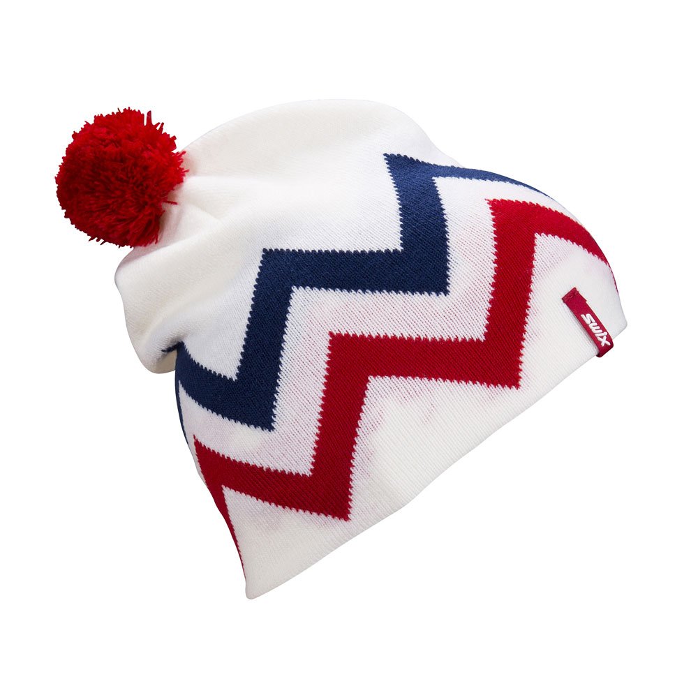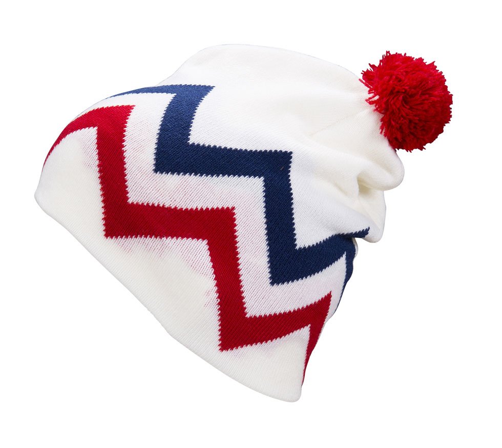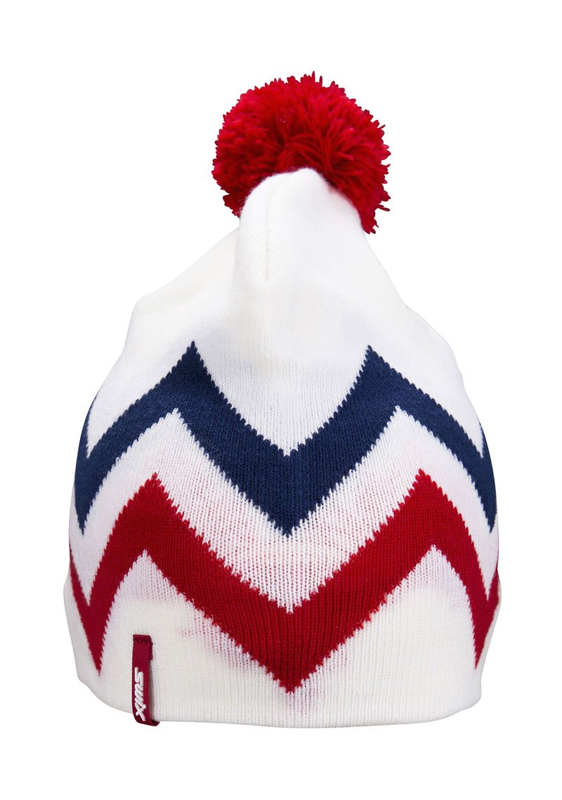 Шапка с цветным орнаментом и помпоном для катания на лыжах и зимних прогулок. Двойная конструкция обеспечивает тепло, акриловый трикотаж имеет легкий вес и не теряет форму.