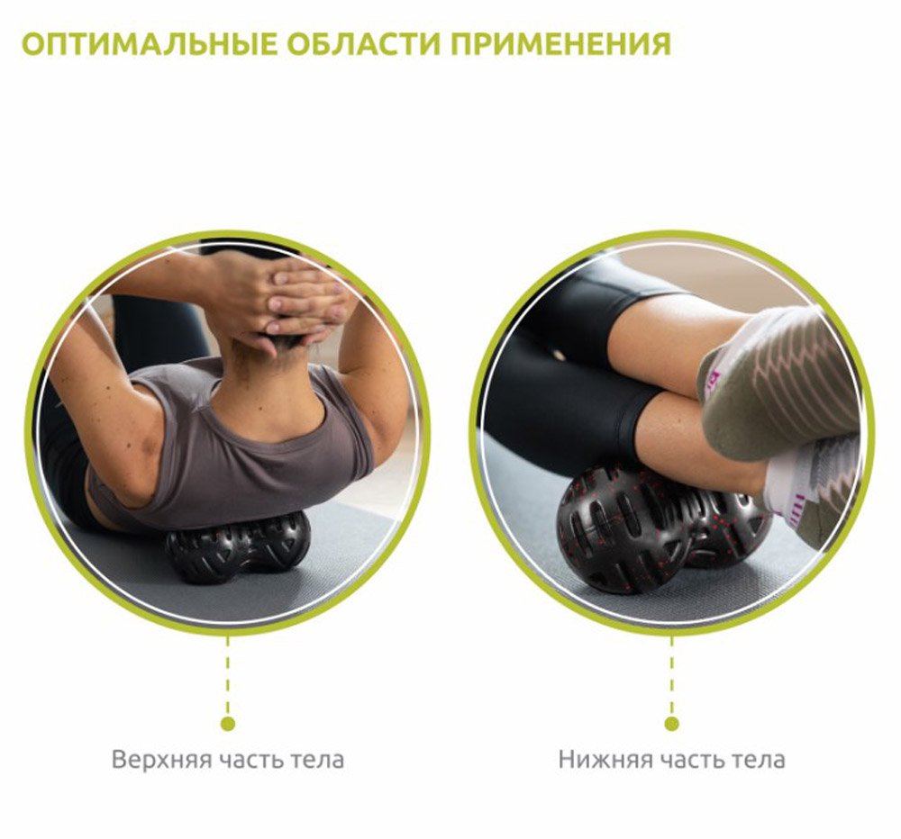 Эргономичный дизайн двойного мяча превращает массаж всего тела в легкий и эффективный процесс. Рельефная текстура поверхности улучшает кровообращение, снимает мышечное напряжение и обеспечивает глубокую проработку тканей даже в труднодоступных местах.