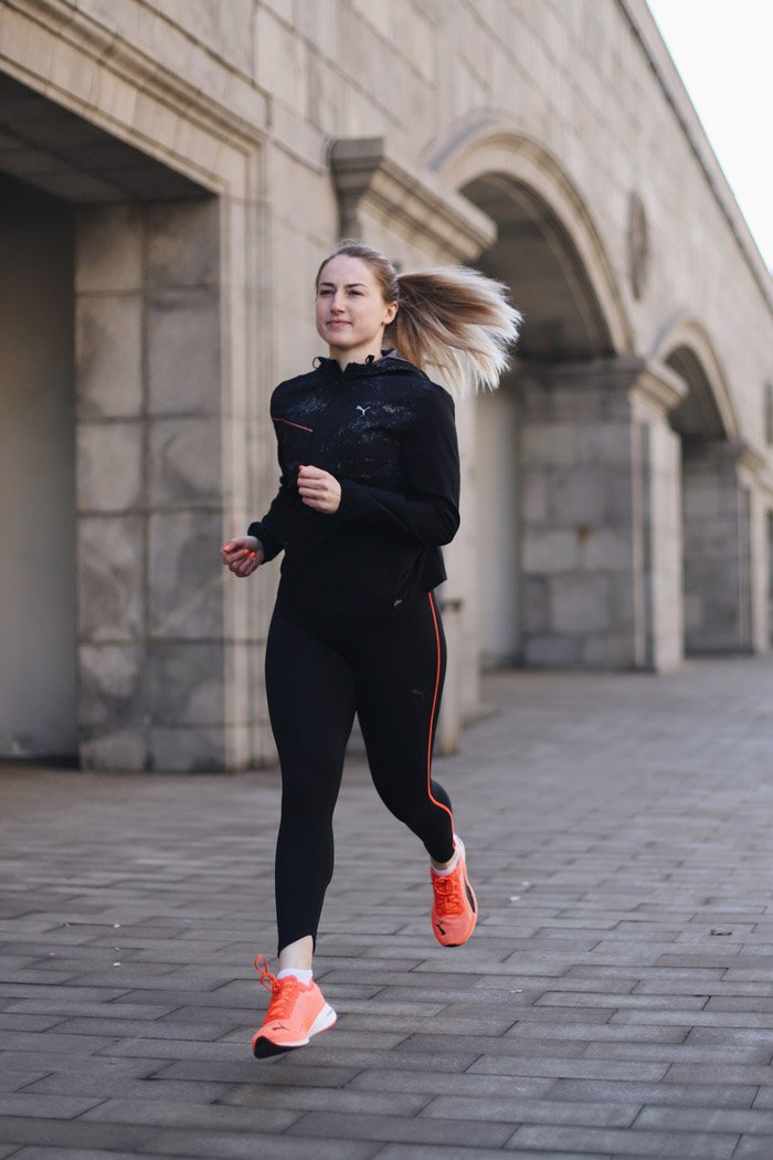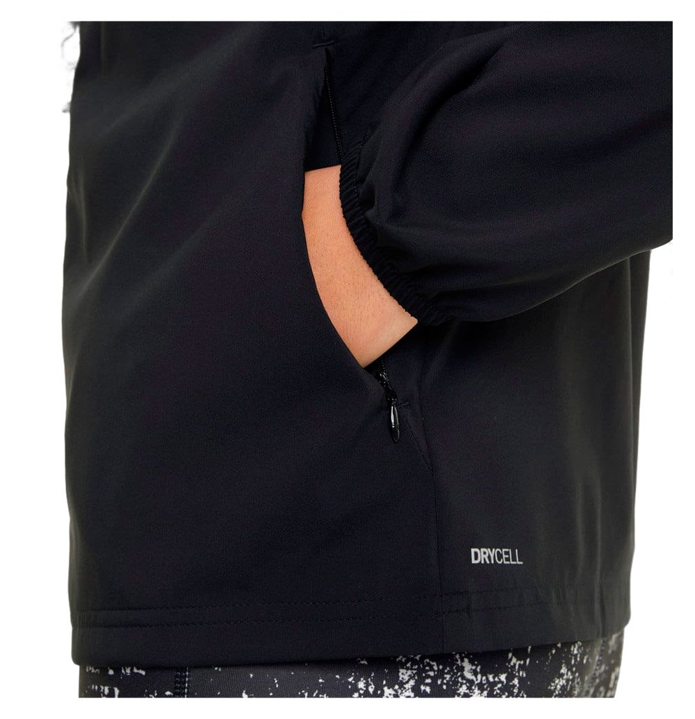 Капюшон со шнурками позволяет регулировать посадку, а в карманах на молнии удобно хранить важные вещи. Светоотражающие элементы повышают безопасность тренировок в темное время суток.