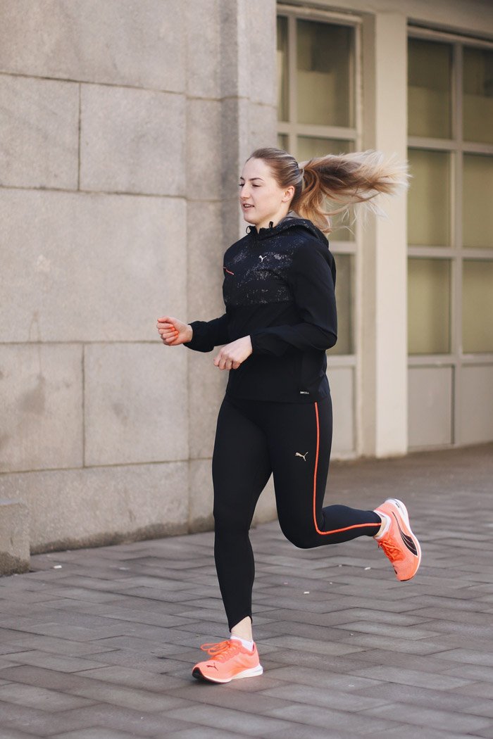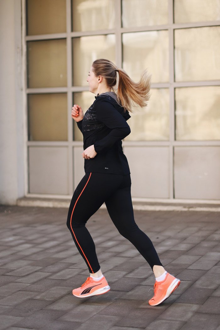 Светоотражающая отделка повышает безопасность тренировок в темное время суток.