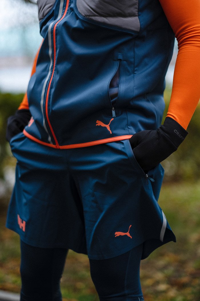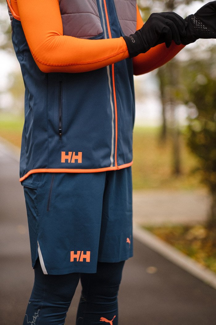 Мужские шорты из коллекции, созданной совместно с компанией Helly Hansen, ведущим производителем одежды для активного отдыха. Новая линия одежды разработана бегунами для бегунов, в ней учтены самые актуальные требования спортсменов к спортивной одежде.