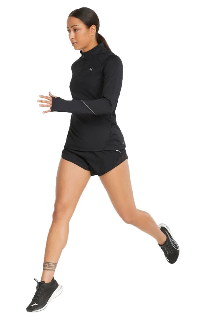 Пояс высокий, с задней стороны в нем размещен водонепроницаемый карман на молнии для хранения мелочей. Предусмотрены светоотражающие элементы для безопасных тренировок в темное время суток.