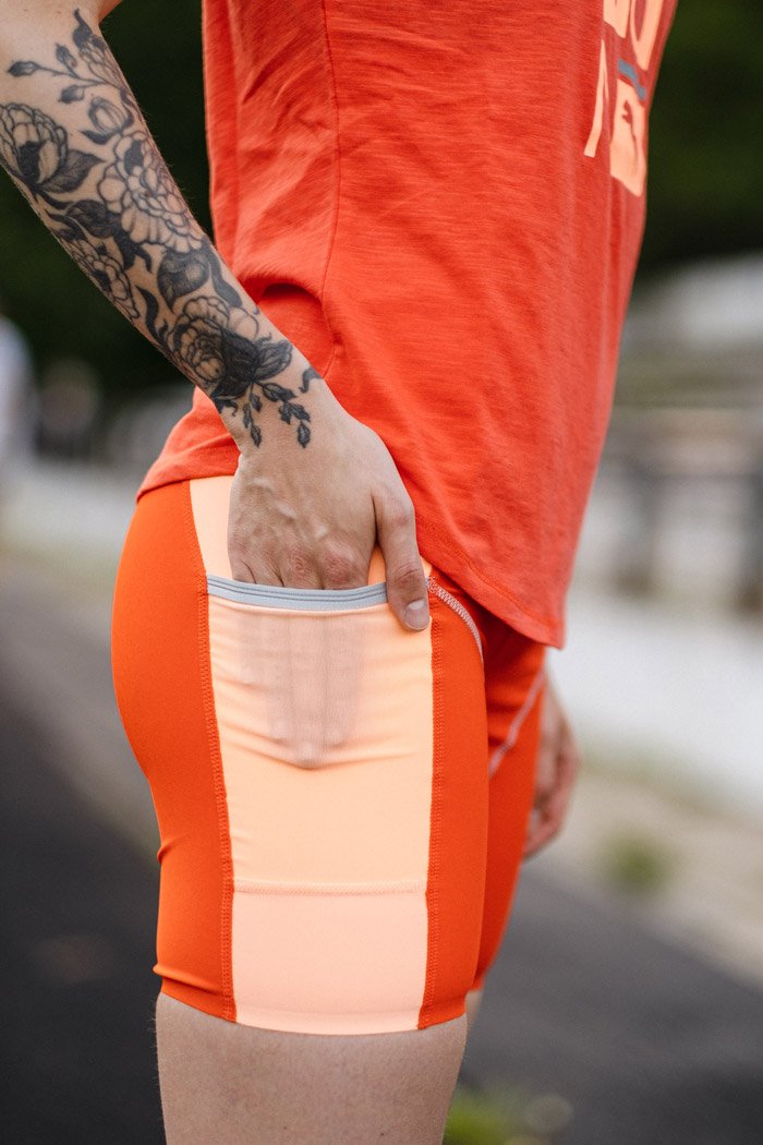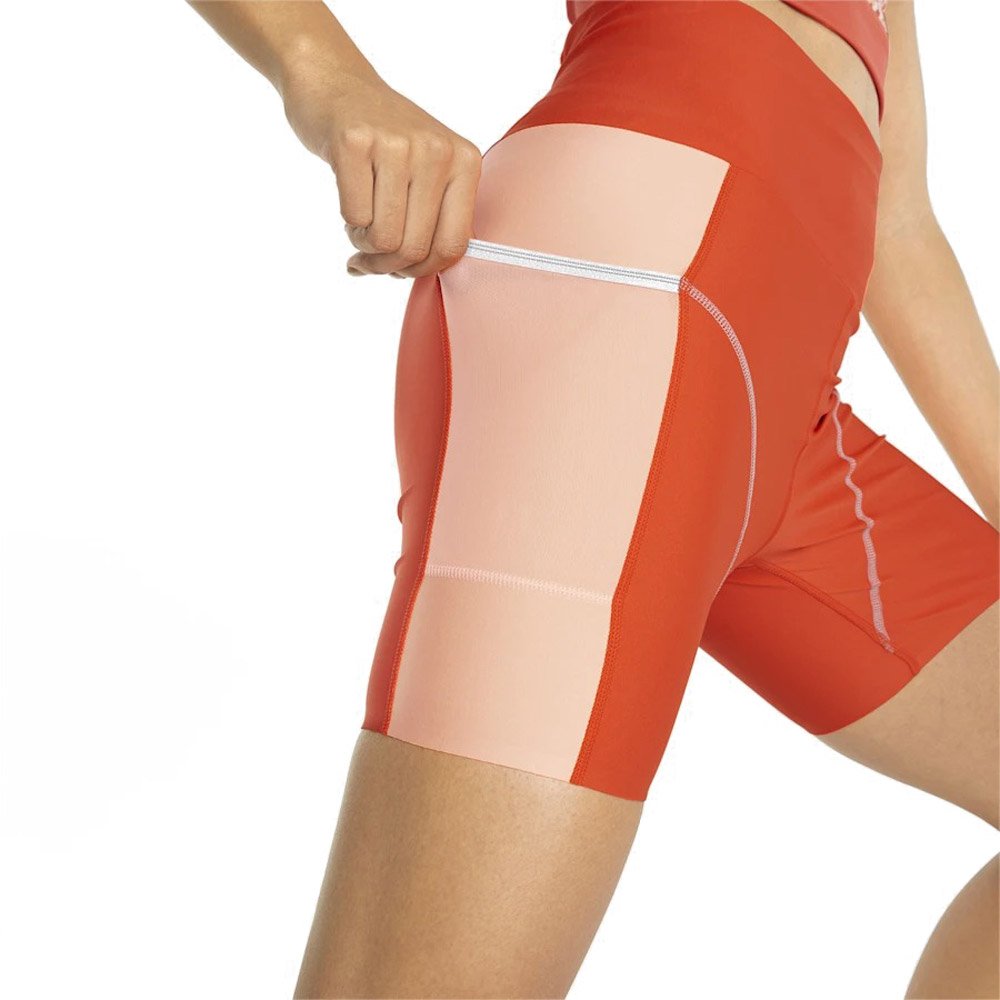 Компрессионный материал обеспечивает поддерживающую посадку и не сковывает движений. Сзади и по бокам предусмотрены карманы для хранения важных мелочей.