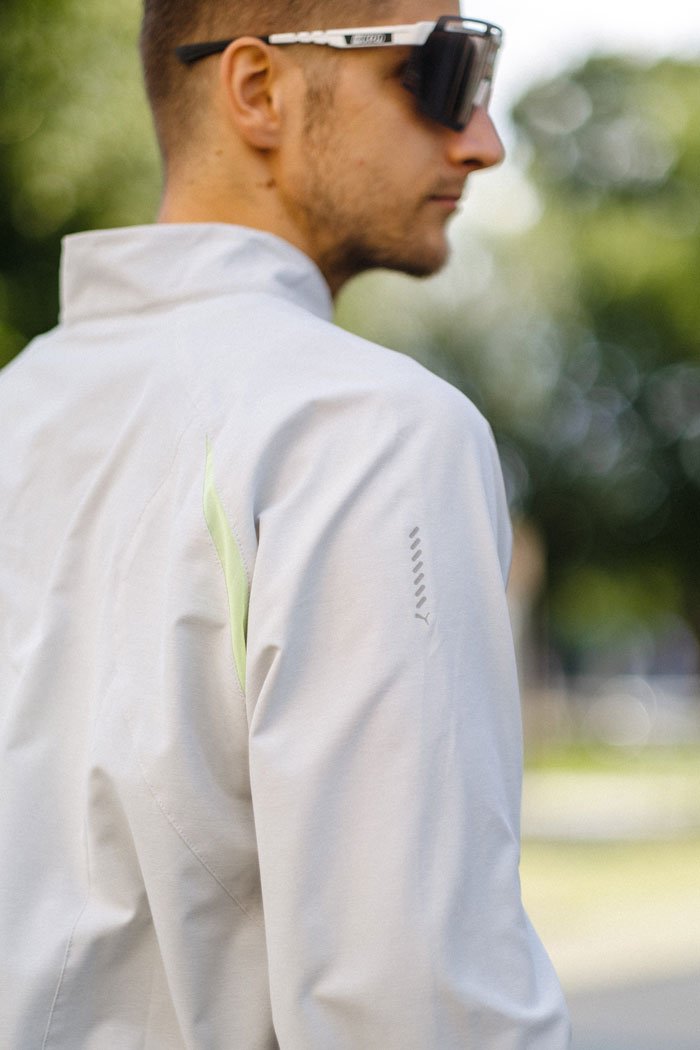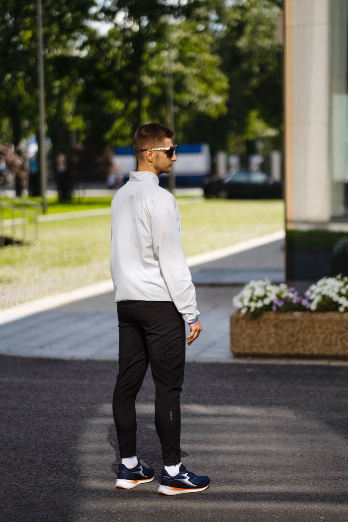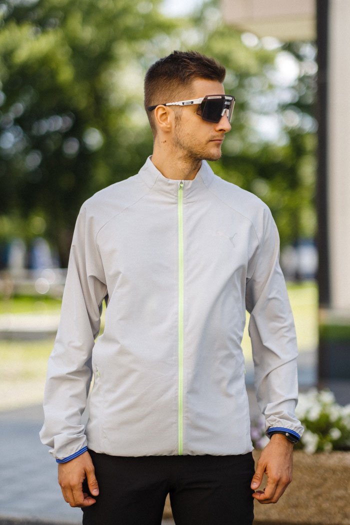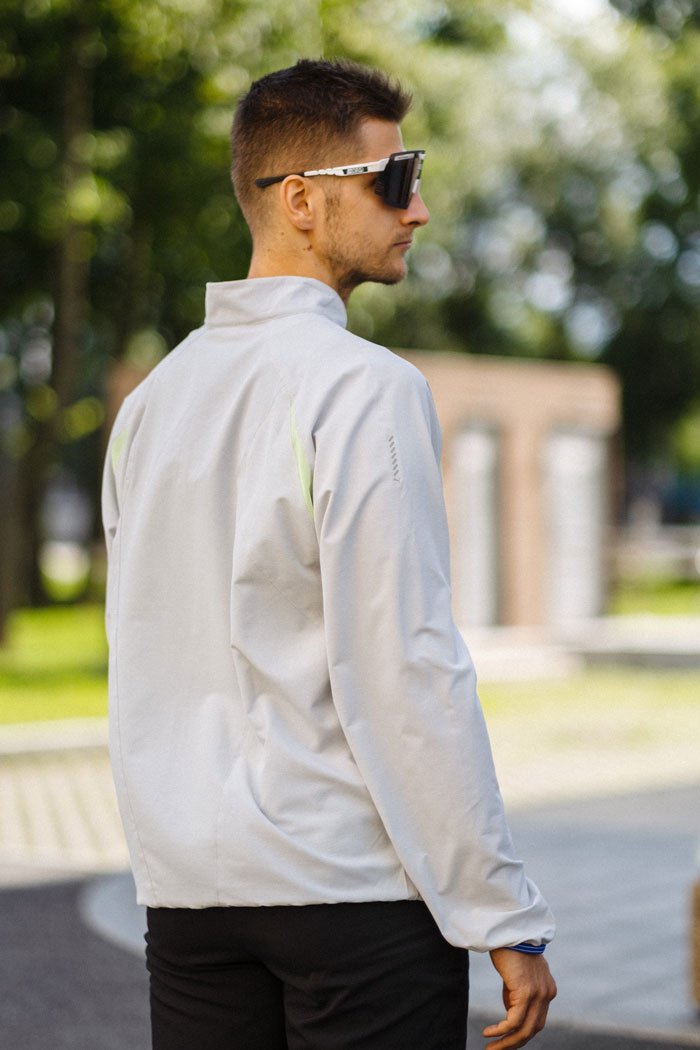 Воротник-стойка и трикотажные манжеты защищают от холодного ветра. Сетчатые вставки сзади в области рукавов обеспечивают отвод влаги и качественный воздухообмен. В боковых карманах на молниях удобно хранить необходимые на пробежке мелочи и перекус.