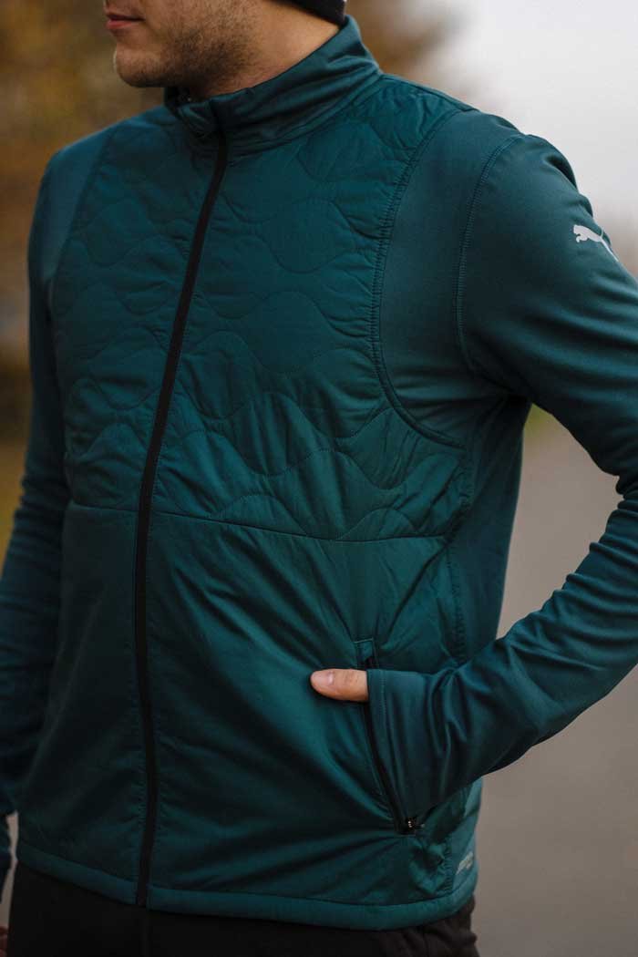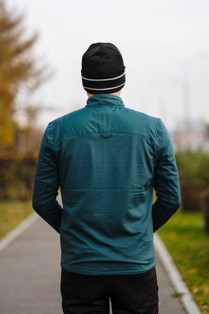 Удлиненные манжеты с отверстиями для больших пальцев защищают кисти рук от холода. В боковых карманах на молниях удобно хранить необходимые на пробежке мелочи. Светоотражающие элементы повышают видимость спортсмена во время пробежек в темное время суток.
