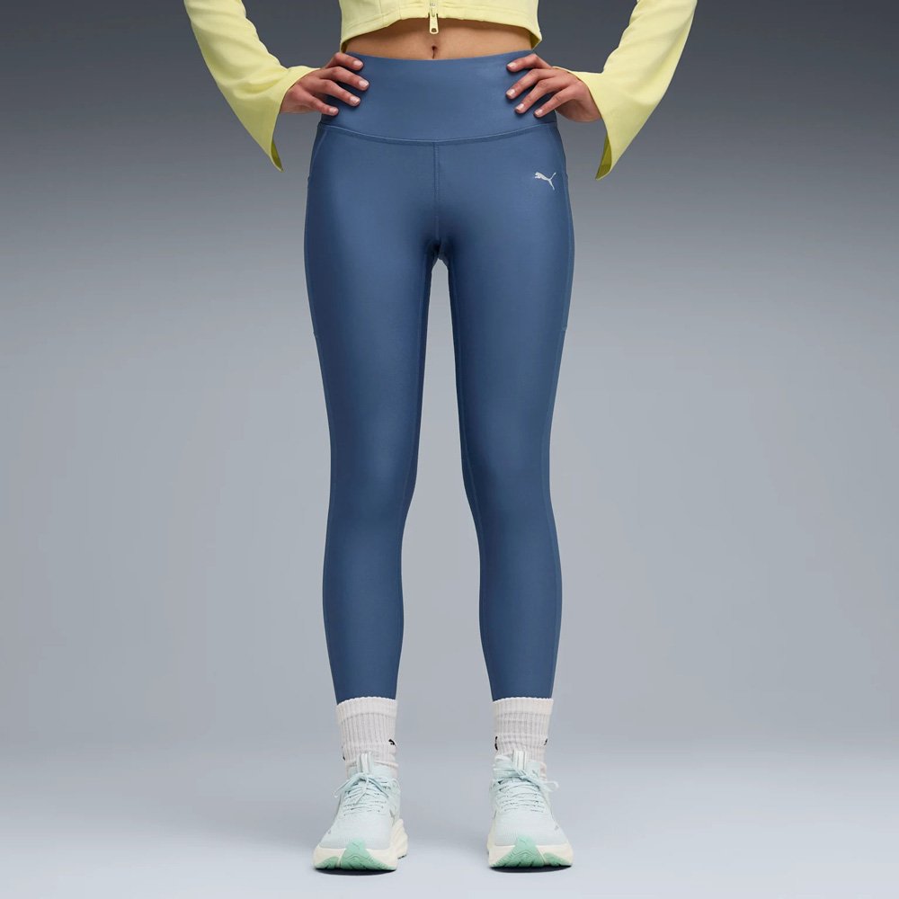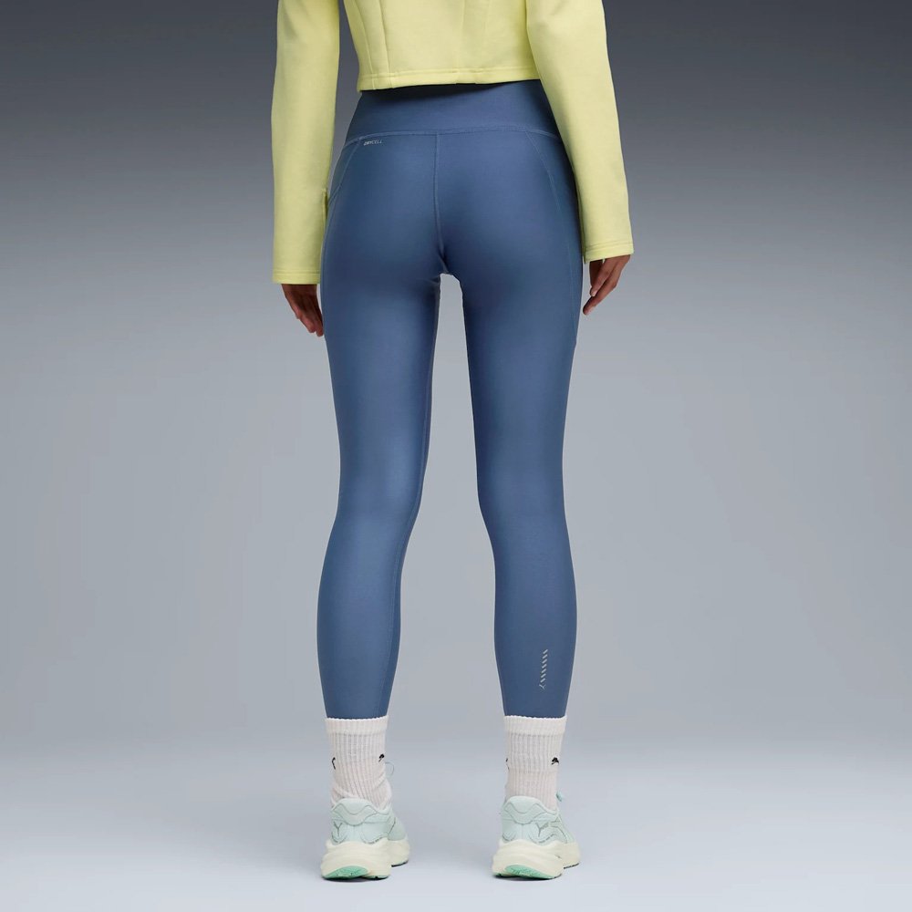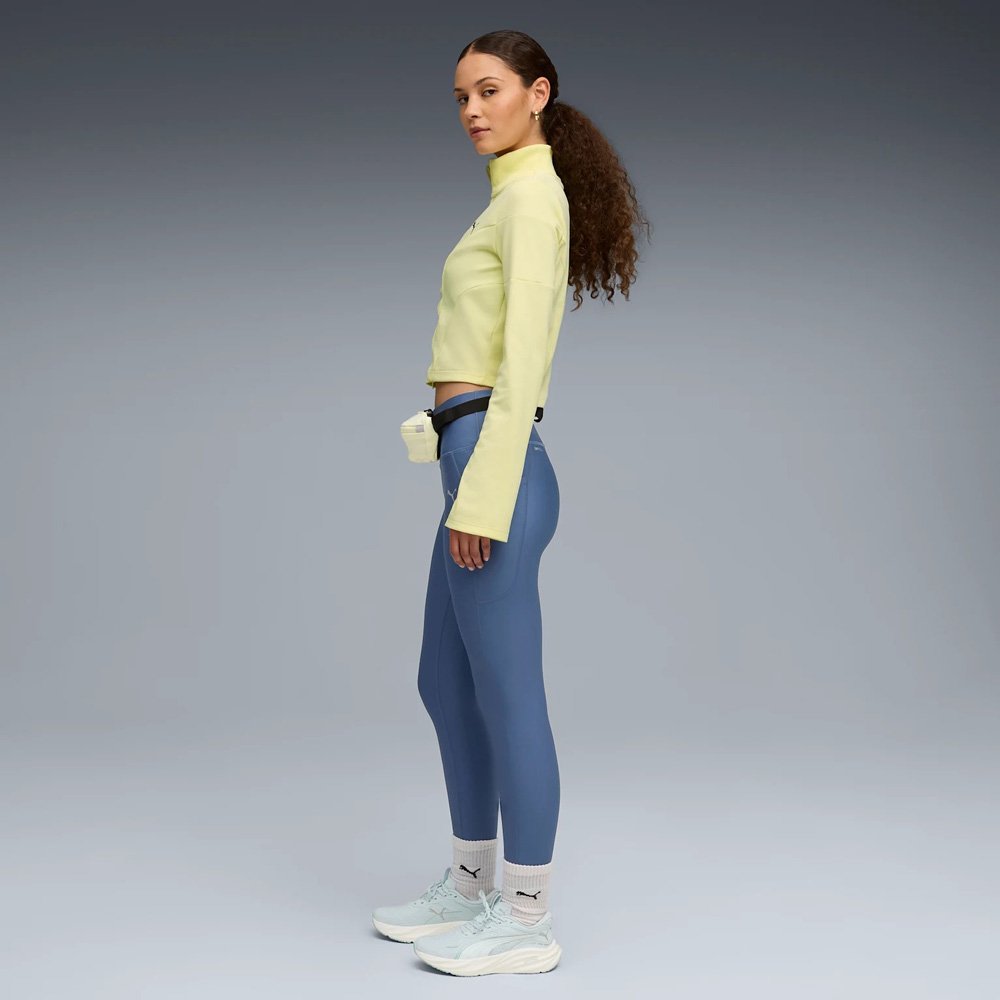 Широкий пояс с внутренним шнурком обеспечивает надежную посадку. В открытых боковых карманах удобно хранить спортивное питание и необходимые на пробежке мелочи. Светоотражающие элементы повышают видимость в условиях недостаточной освещенности, обеспечивая безопасность в утренние и вечерние часы. Тайтсы выполнены не менее чем на 50% из переработанных материалов, что делает их не только функциональными, но и экологичными.