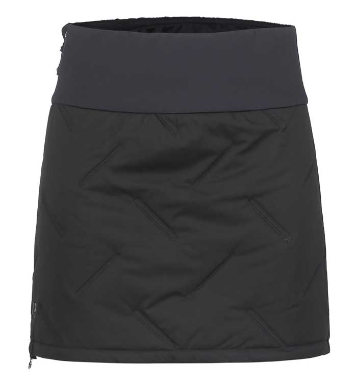 Фронтальная и задняя части юбки утеплены вставками с синтетическим наполнителем, который надежно сохраняет тепло и защищает от холода во время зимних тренировок или прогулок. Эластичные и дышащие участки материала обеспечивают комфортную посадку и свободу движений. Боковые молнии делают надевание юбки быстрым и удобным, позволяя легко комбинировать ее с термобельем или легинсами.