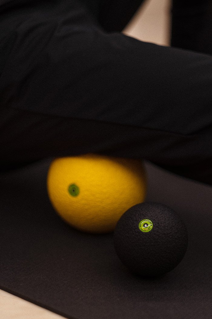 Миниатюрный мяч диаметром 8 см отлично подходит для точечного массажа глубоко расположенных групп мышц кора, рук, ног, стоп и шеи. Рекомендуется применять его в положении лежа, сидя или с опорой на стену.