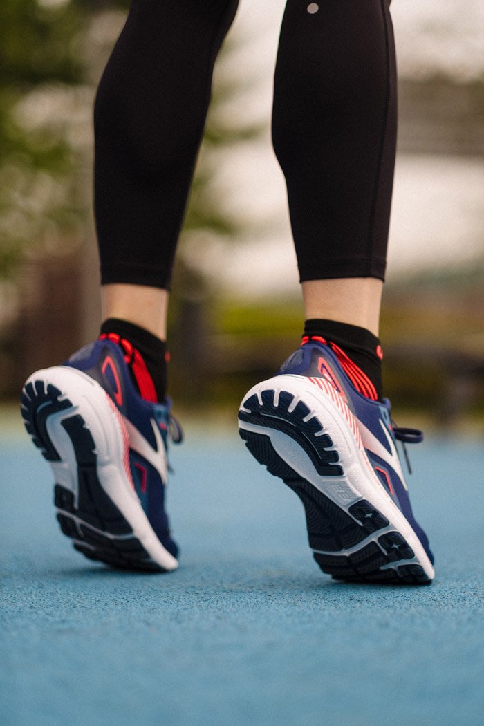 Обновленная промежуточная подошва DNA Loft v2 стала легче и мягче, чем в предыдущей версии. Применение технологии Guide Rails® обеспечивает поддержку и стабильность на любых поверхностях.