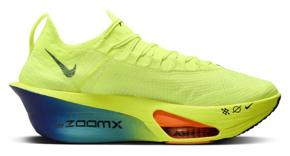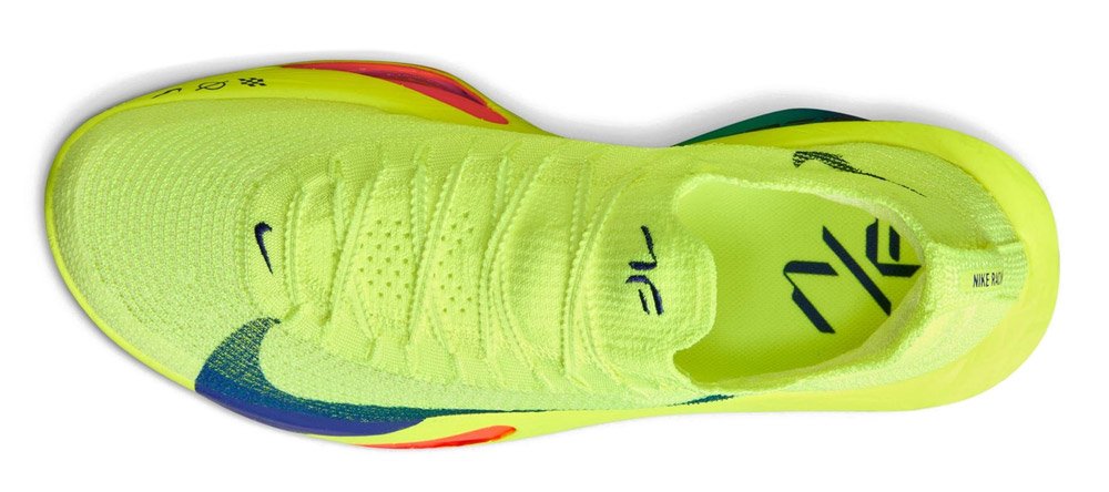 В передней части подошвы расположены две вставки Air Zoom, которые эффективно преобразуют энергию шага в дополнительное ускорение. Промежуточная подошва из сверхлёгкой пены ZoomX обеспечивает исключительную амортизацию при минимальном весе. Карбоновая пластина Flyplate, проходящая по всей длине стопы, стабилизирует движение, усиливает отталкивание и снижает утомляемость мышц. Особая геометрия подошвы способствует плавному перекату и сохранению энергии во время бега.