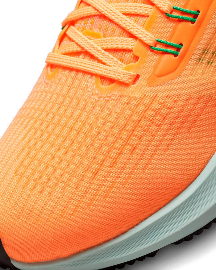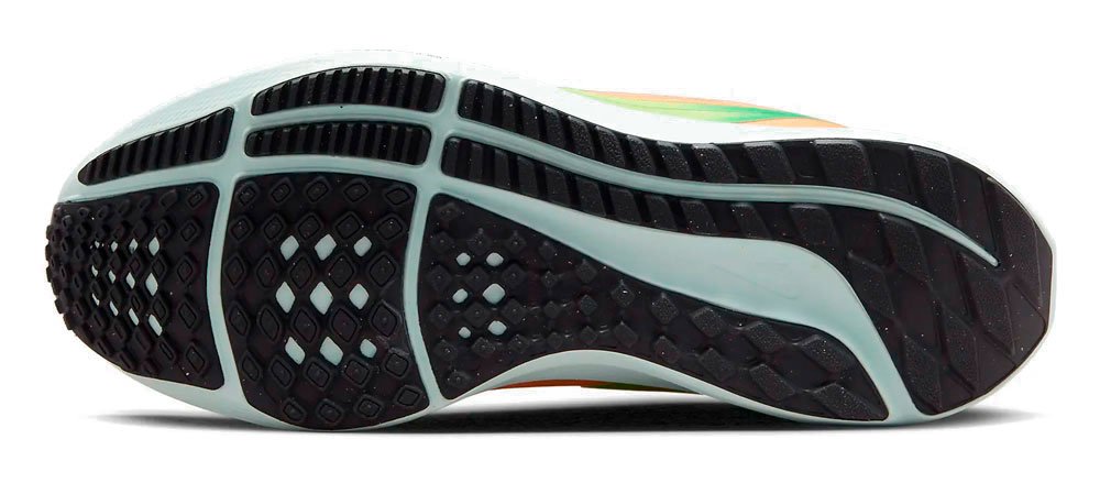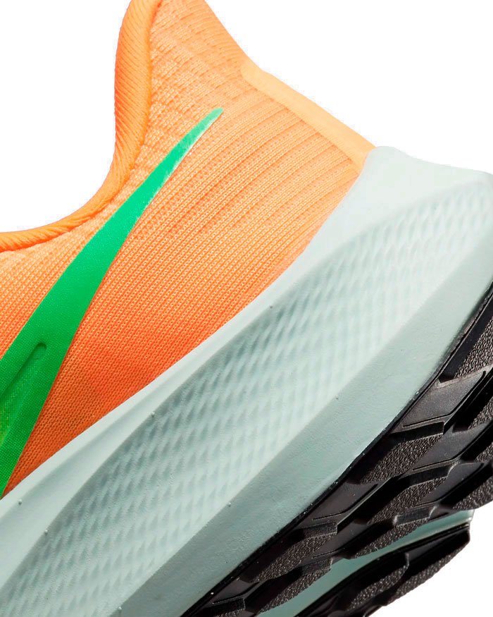 В модели использована технология Flywire, которая интегрирована в среднюю часть стопы для комфортной поддержки ног. Толстый слой пены в области пятки создает отзывчивую амортизацию и оптимизирует приземление, способствуя плавному перекату. Вафельная подошва обеспечивает превосходное сцепление, а желобки на резиновой подошве делают ее гибкой.