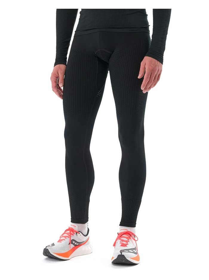 Компрессионные тайтсы для тренировок в холодный период года. Инновационный материал с применением технологии On/Off адаптируется к температурному режиму спортсмена, обеспечивая отличную вентиляцию и терморегуляцию в зависимости от уровня активности.