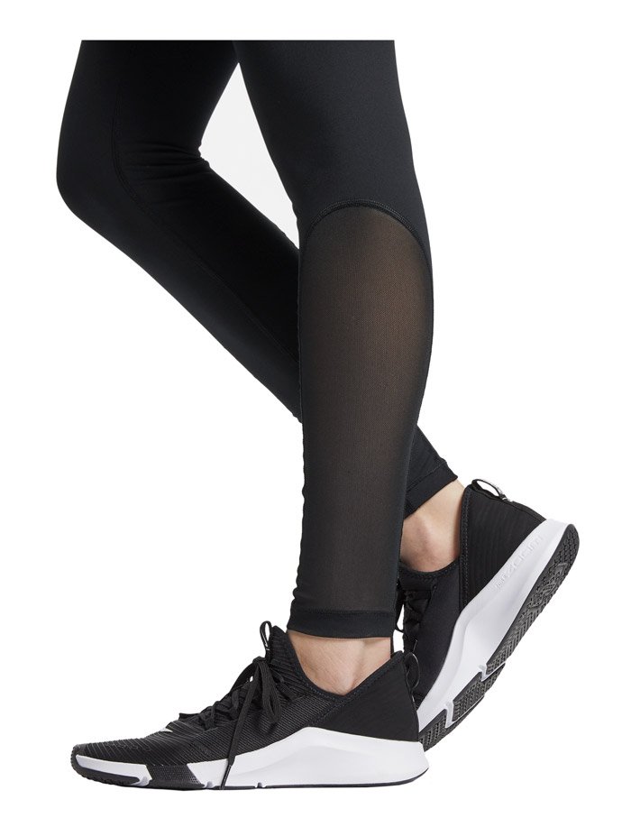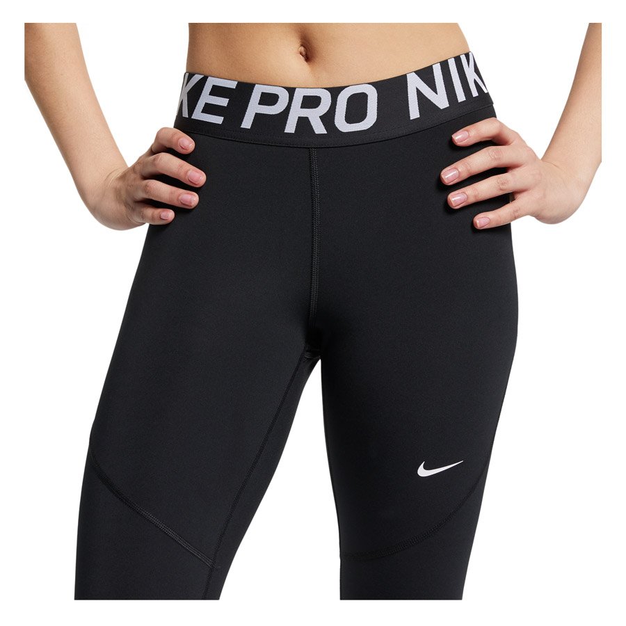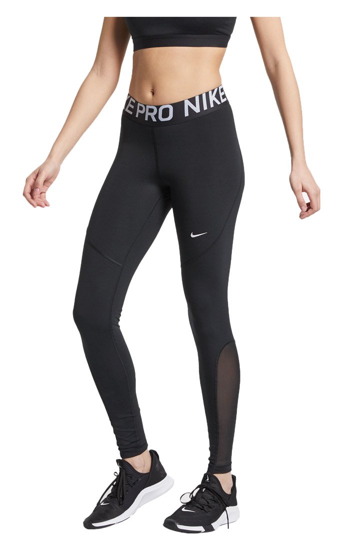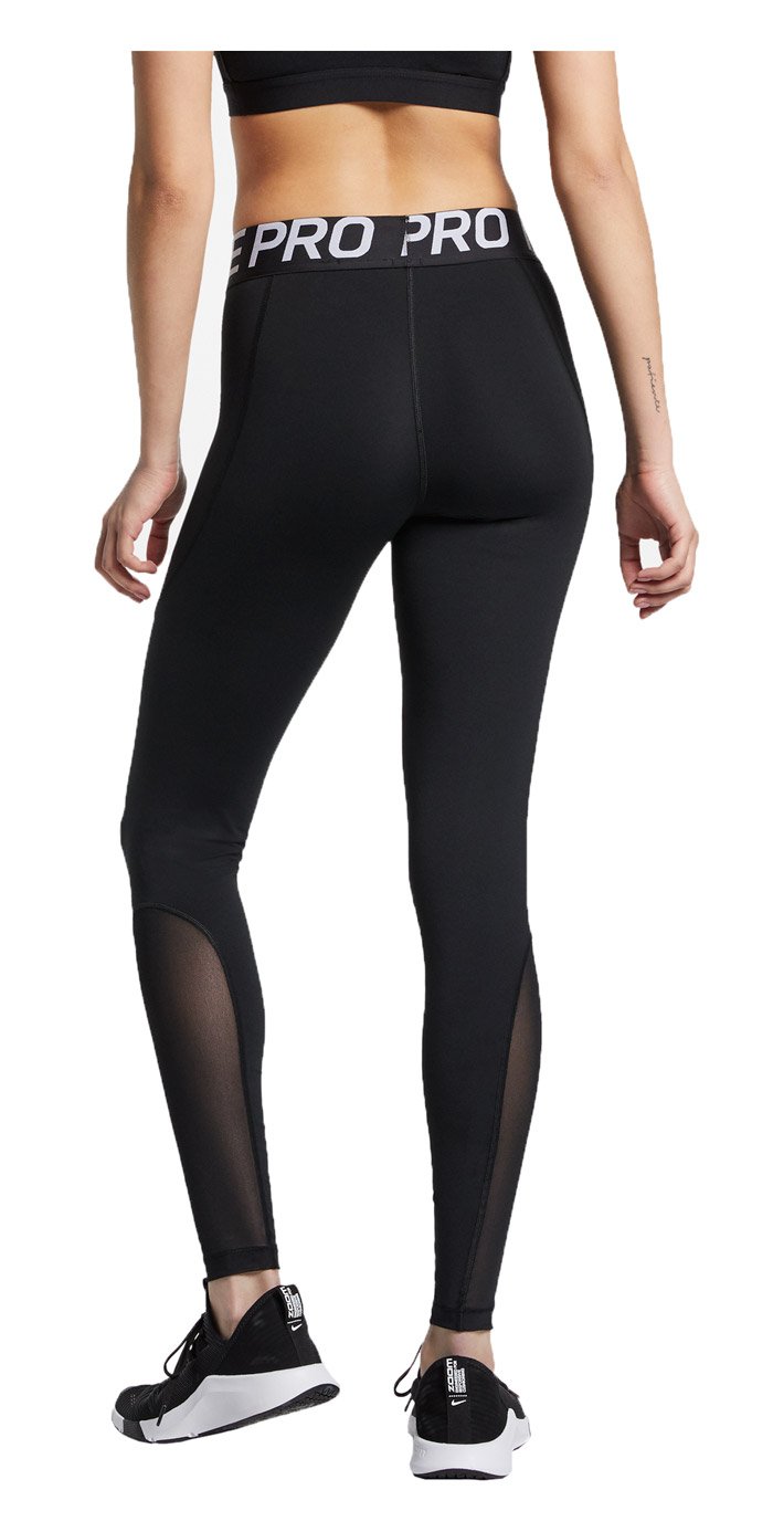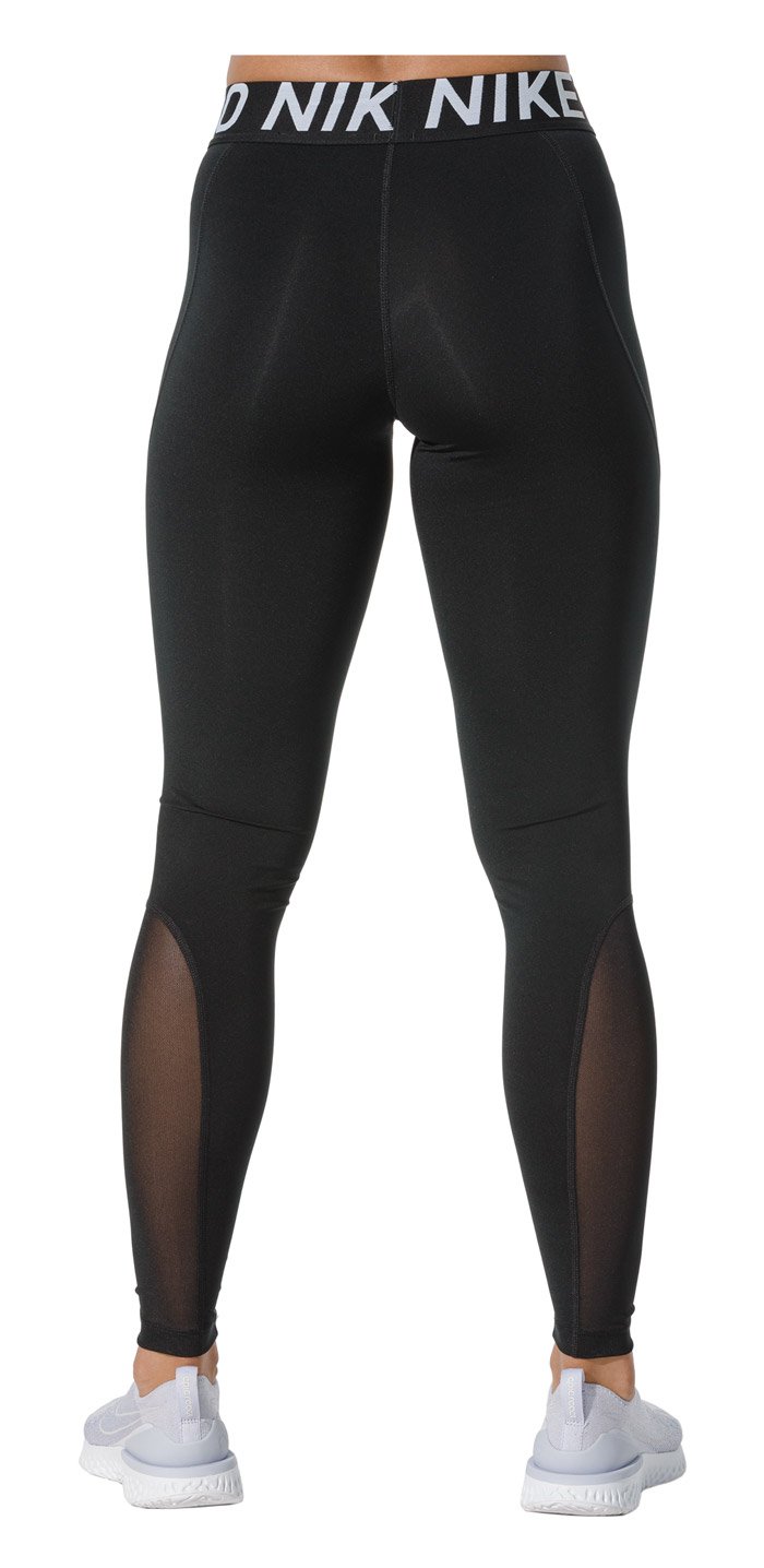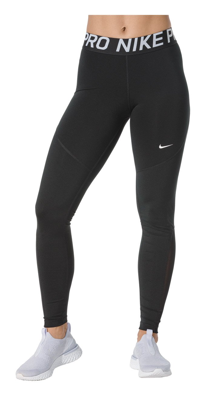 Женские тайтсы из функциональной ткани Nike Pro, обеспечивающей плотную посадку и воздухопроницаемость. Для дополнительной вентиляции в нижней части штанин располагаются вставки из эластичной сетки.