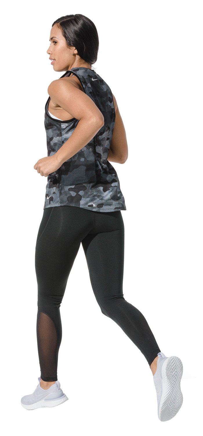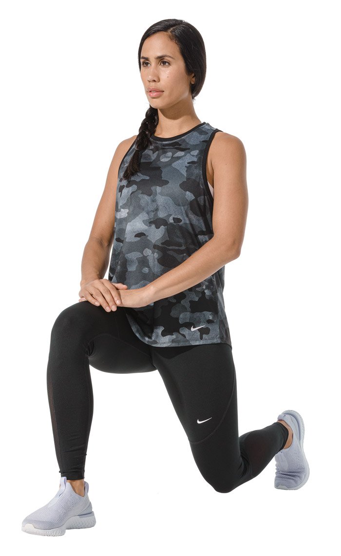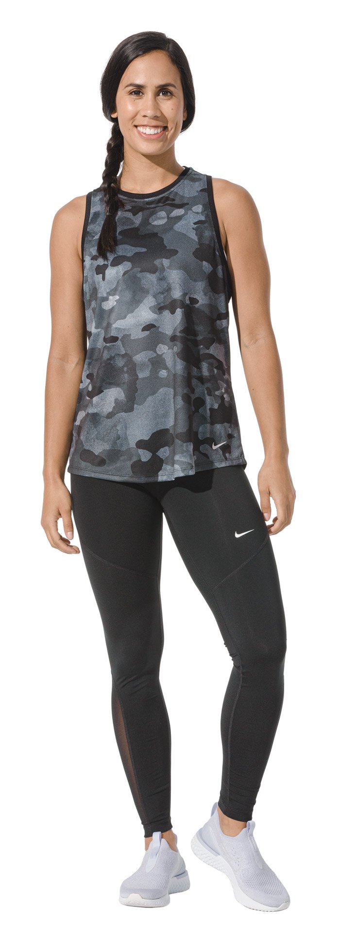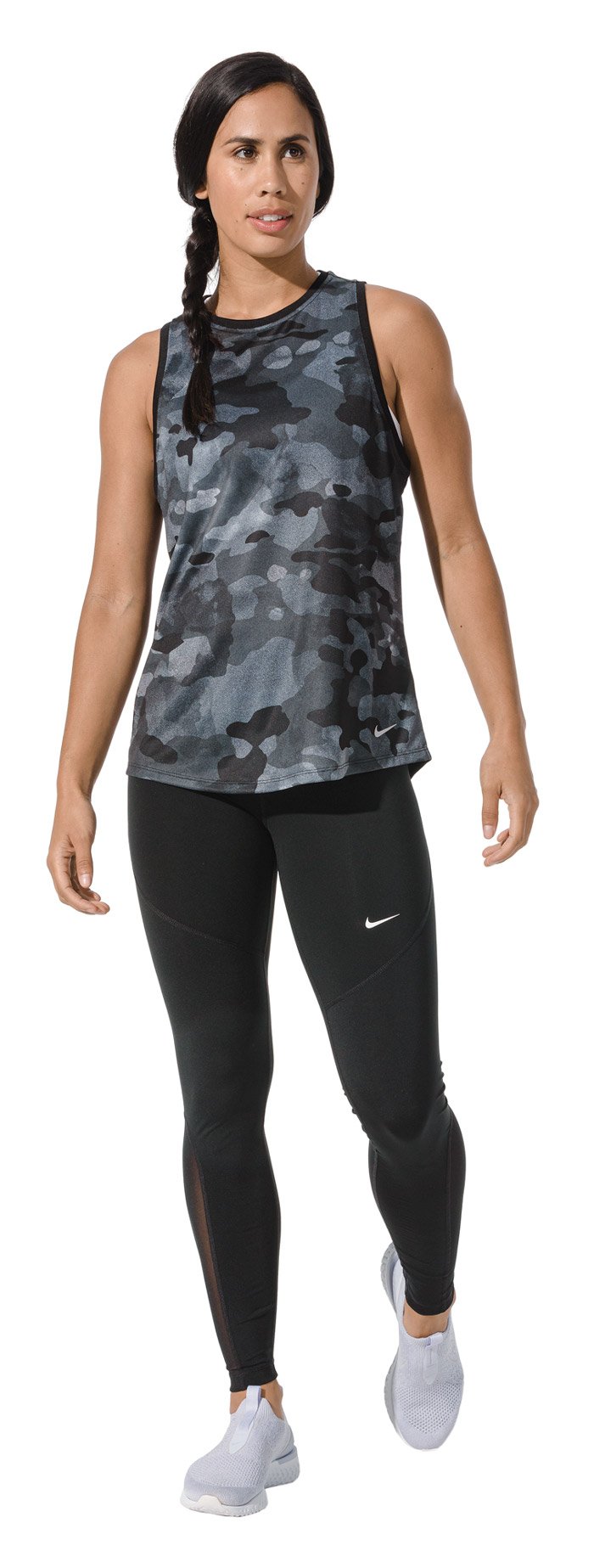 Широкий пояс с принтом Nike Pro дарит комфорт и надежно фиксирует тайтсы.