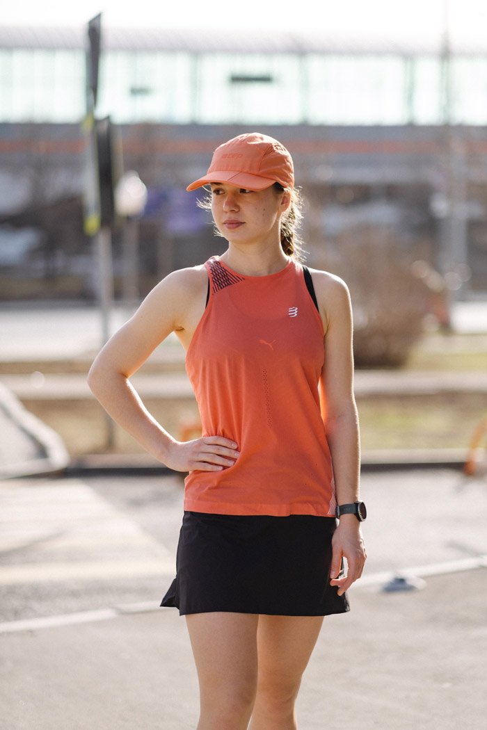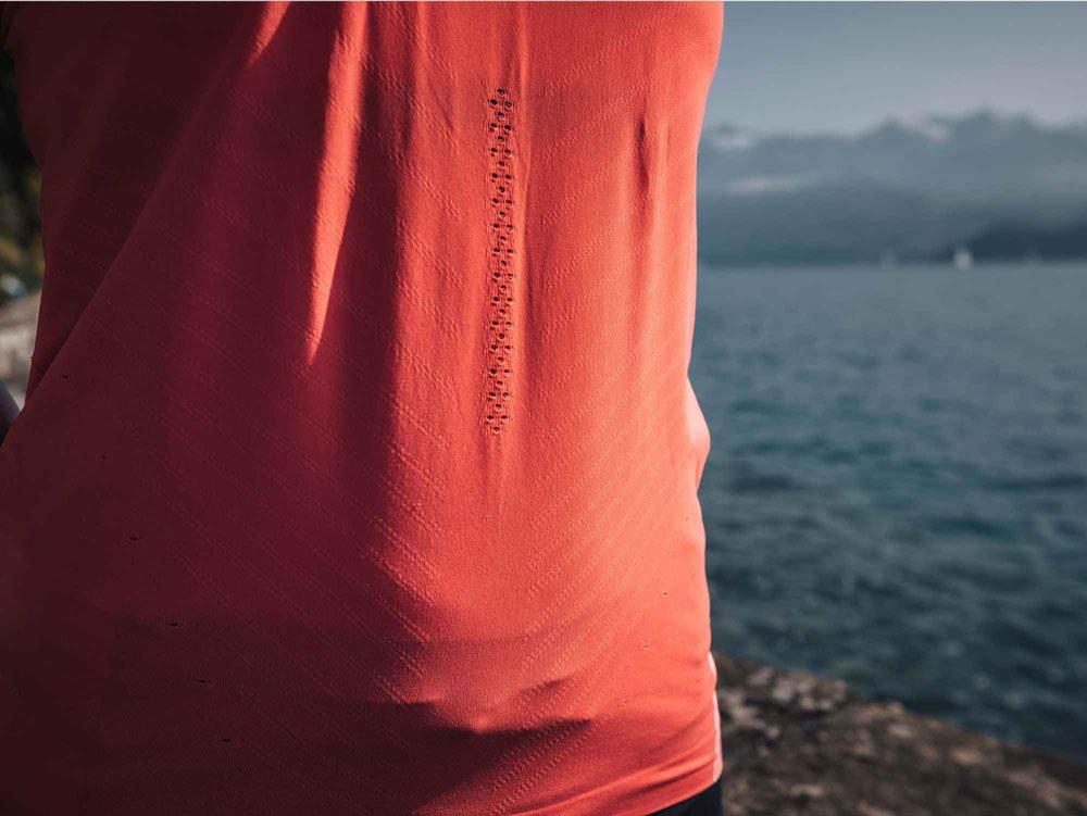 Легкая бесшовная майка для бега и фитнеса с оригинальным ассиметричным принтом. Модель изготовлена из мягкого и приятного на ощупь микроволокна. На спине и груди предусмотрены зональные сетчатые вставки для вентиляции во время активности.