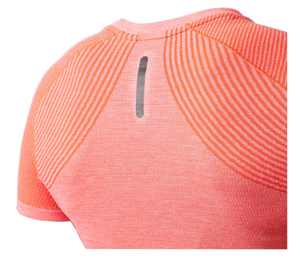 Эта футболка выполнена из специальной ткани, которая позволит предотвратить перегрев тела во время тренировок по бегу. В этой модели практически отсутствуют швы, что позволяет двигаться в ней комфортно и практически не ощущать ее на коже. Особенности этой модели: короткий рукав и наличие специальных светоотражающих элементов на футболке. Футболка имеет цилиндрическую конструкцию, выполненную без использования боковых швов. Модель отличается облегающим кроем, поэтому в ней удобно заниматься бегом, ведь она повторяет все линии вашего тела.