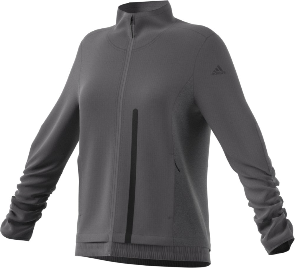 Функциональная женская куртка для беговых тренировок. Выполнена из мягкой ткани, которая не пропускает внутрь влагу. Рукава имеют анатомический крой, не стесняющий движения во время бега. Манжеты на рукавах предотвращают попадание холодного воздуха внутрь. Куртка застегивается на молнию, внизу расположены завязки, для того чтобы отрегулировать низ в зависимости от погоды.