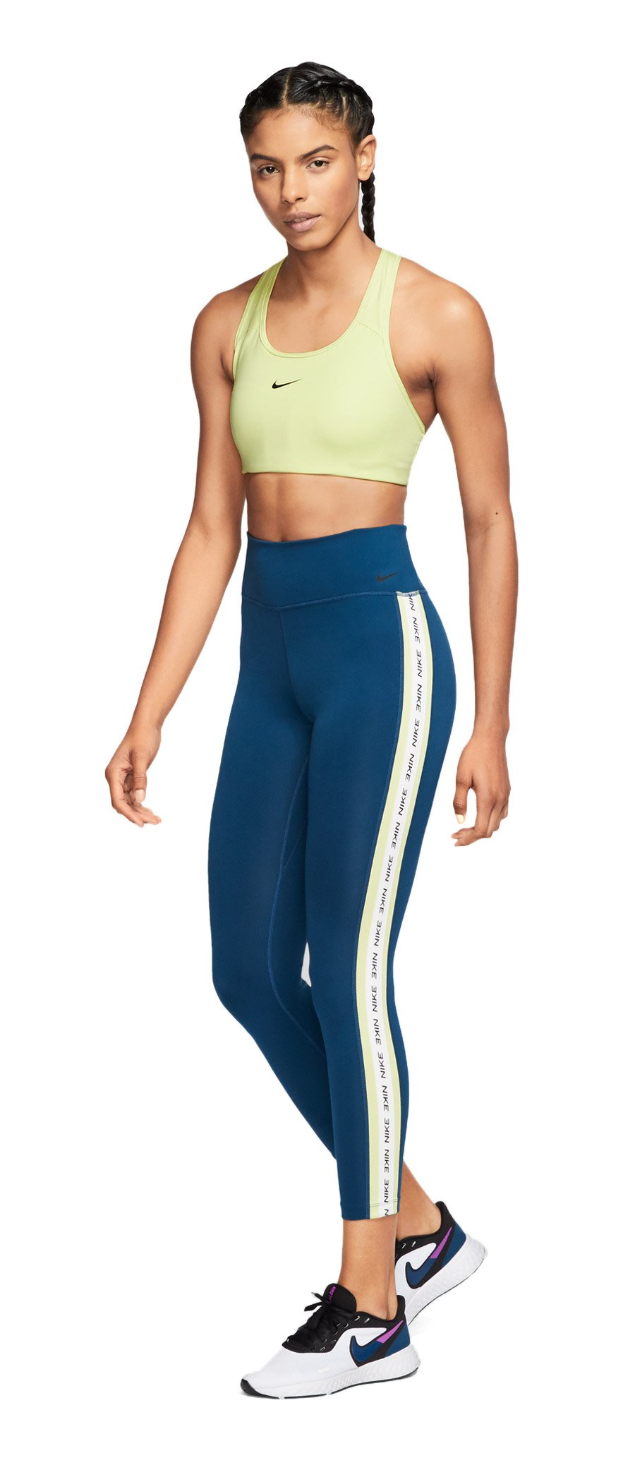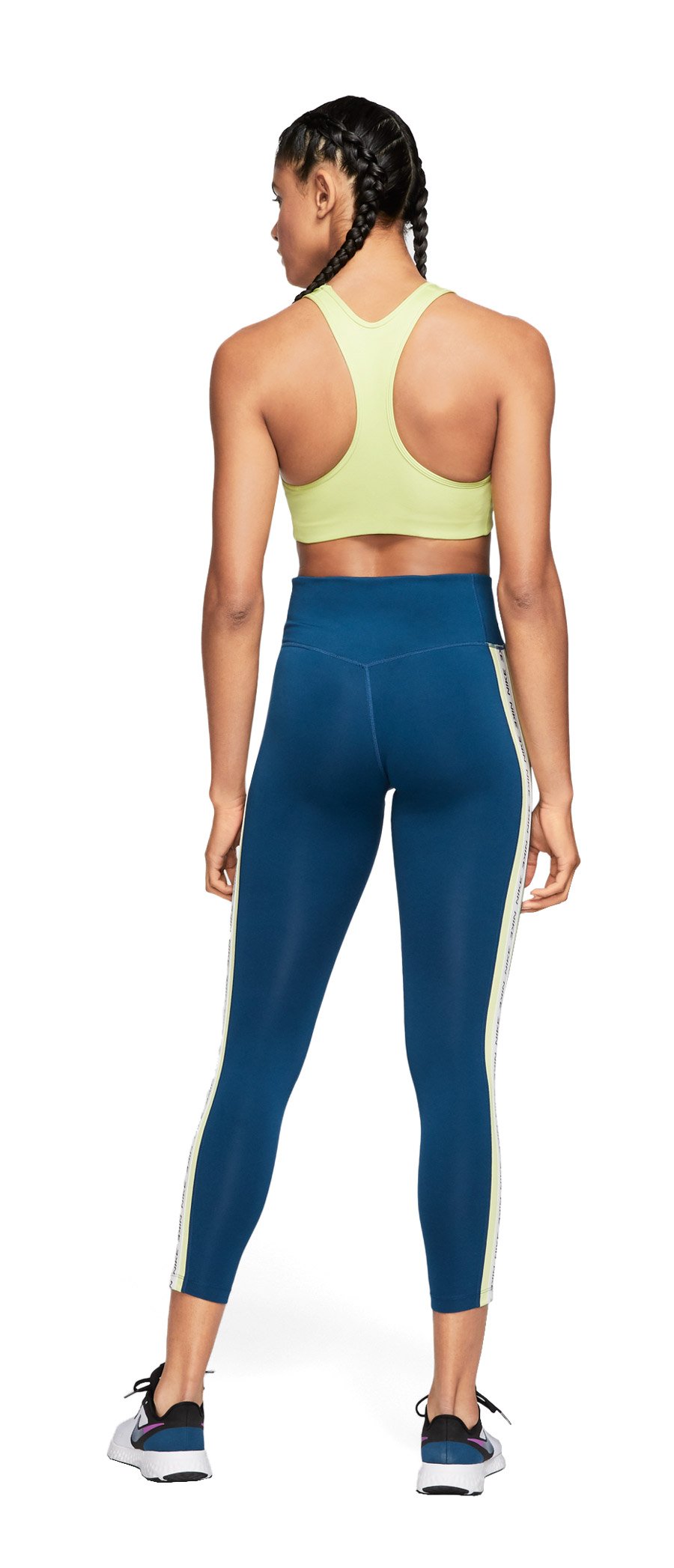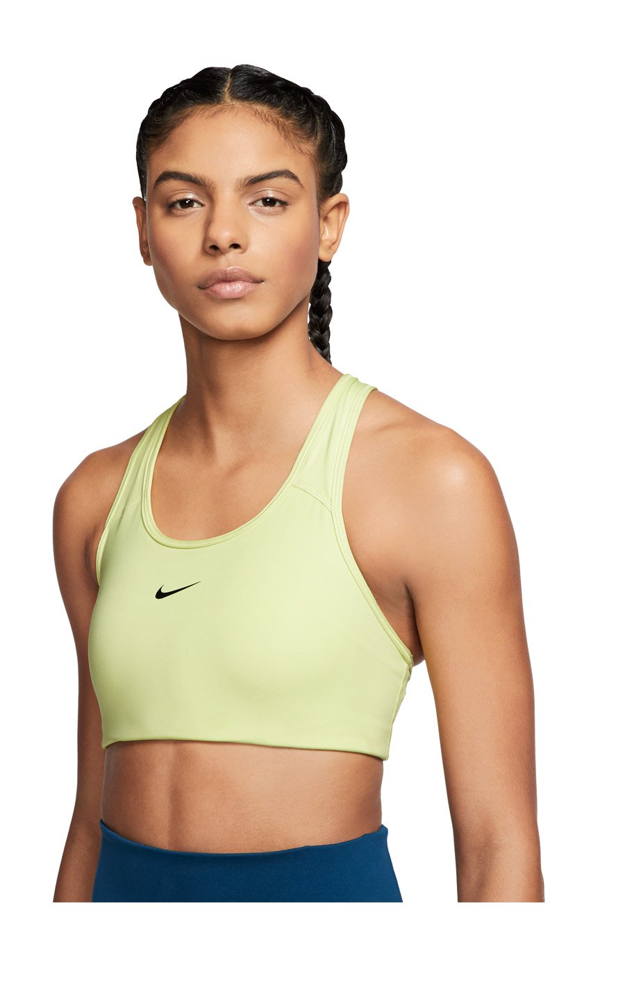Влагоотводящая ткань Dri-FIT и плоские швы обеспечивают комфорт во время носки. Под грудью мягкий эластичный пояс для плотной посадки и фиксации. Т-образная спина не сковывает движений.