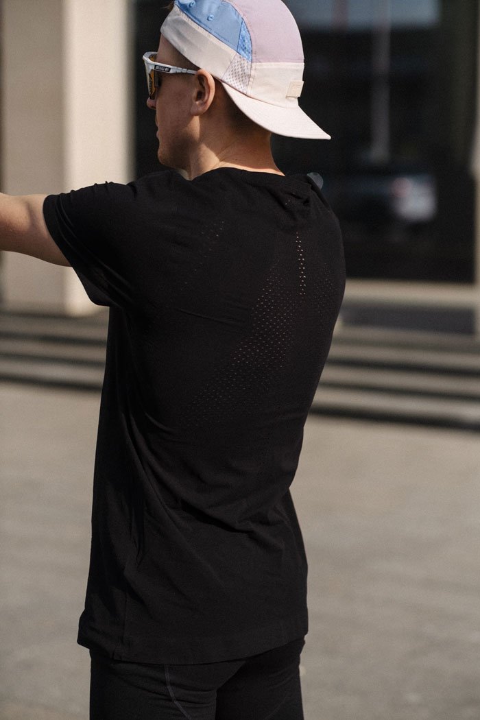 Футболка выполнена из ультралегкого, практически невесомого материала. Силуэт продуман с учетом анатомического строения тела, плотно облегает, но не сковывает движений. Мягкая бесшовная ткань приятна на ощупь и предотвращает возможность натирания кожи.