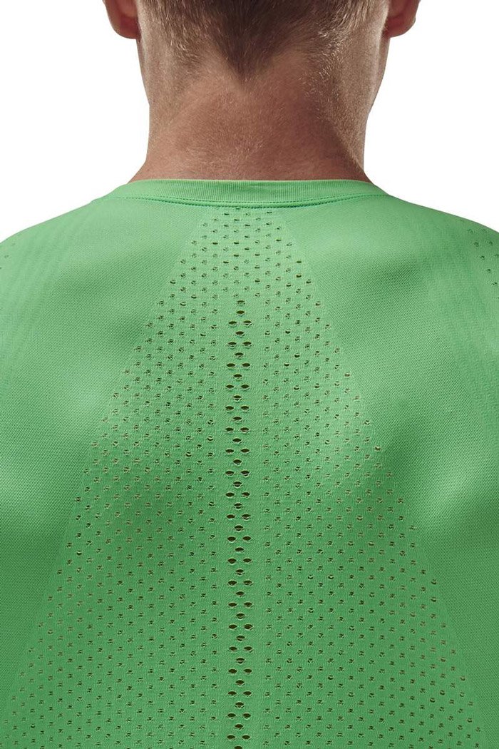 На спине и в области предплечий предусмотрена лазерная перфорация и сетчатые вставки для дополнительной вентиляции. Гидрофильная обработка и особая структура ткани обеспечивают быстрый отвод влаги с поверхности тела и дарят приятный охлаждающий эффект.
