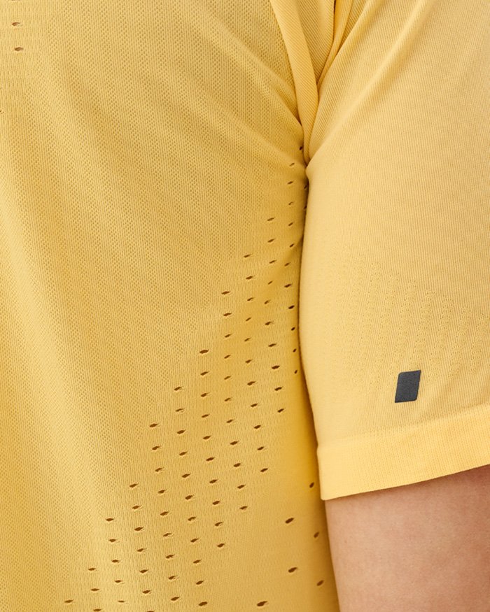 На груди и спине предусмотрена лазерная перфорация и сетчатые вставки для дополнительной вентиляции. Гидрофильная обработка и особая структура ткани обеспечивают быстрый отвод влаги с поверхности тела и дарят приятный охлаждающий эффект.