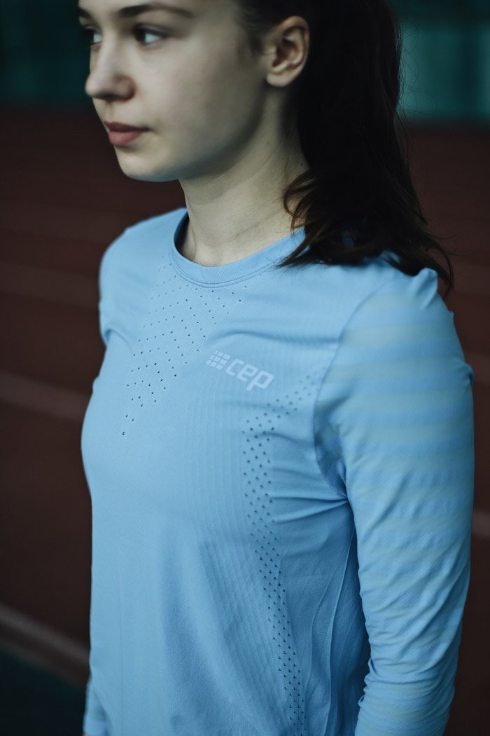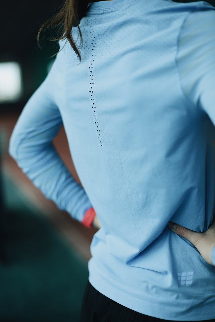 На спине и в области предплечий предусмотрена лазерная перфорация и сетчатые вставки для дополнительной вентиляции. Гидрофильная обработка и особая структура ткани обеспечивают быстрый отвод влаги с поверхности тела и дарят приятный охлаждающий эффект.