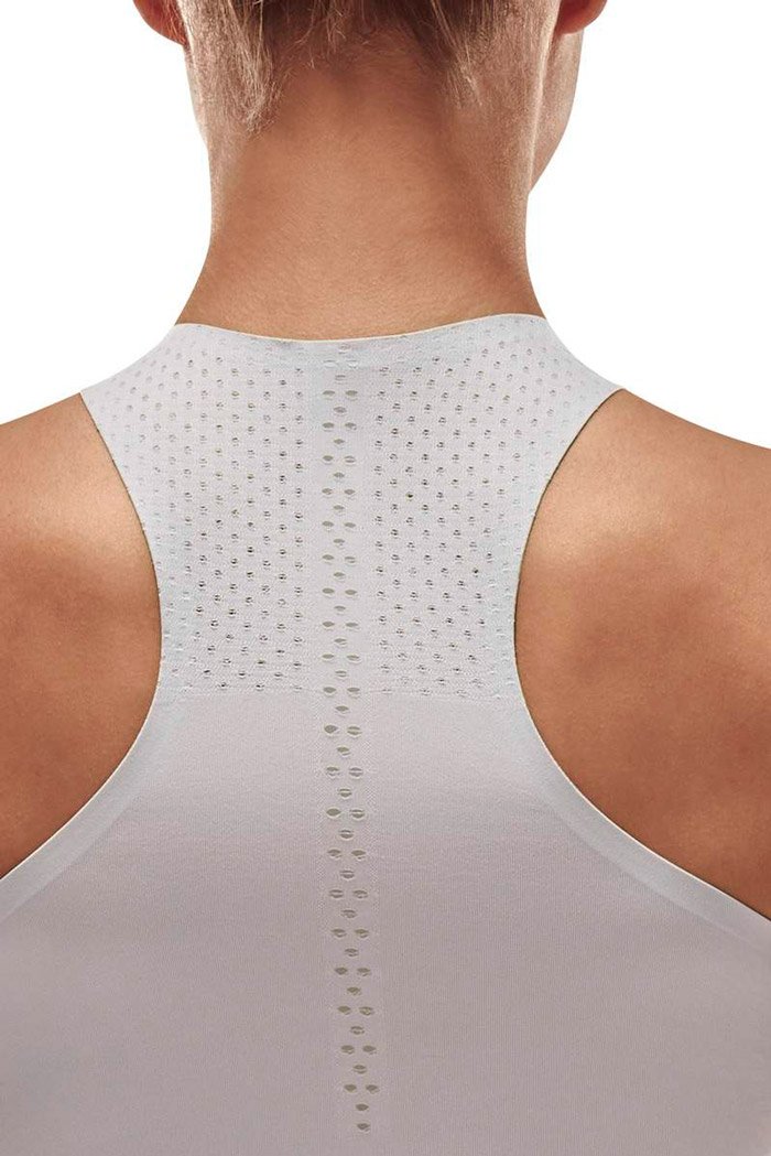 Майка выполнена из ультралегкого, практически невесомого материала. Силуэт продуман с учетом анатомического строения тела, плотно облегает, но не сковывает движений. Мягкая бесшовная ткань приятна на ощупь и предотвращает возможность натирания кожи.