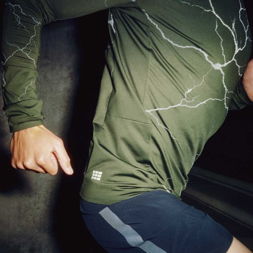 Технология Smart Stretch отвечает за плотную посадку и максимальную гибкость, за счет чего модель ощущается как вторая кожа. Внутренний слой с плюшевой подкладкой гарантирует тепло и комфорт в холодных условиях. На спине располагается карман на молнии, в котором удобно хранить ключи или питание. Удлиненные манжеты предусматривают отверстия для больших пальцев, предотвращающие задирание рукавов.