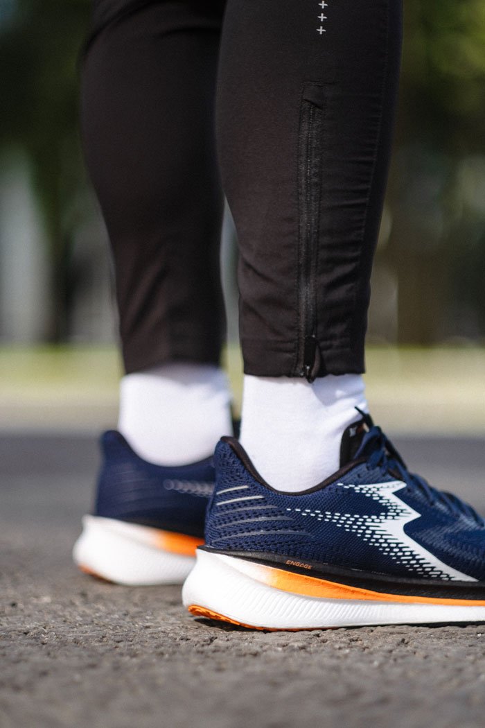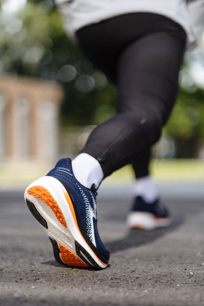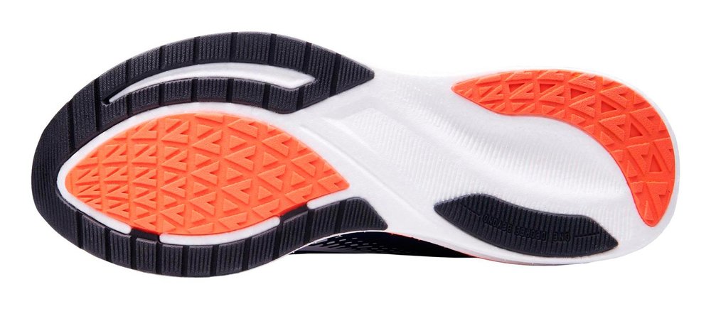 Новая технология из пеноматериала Engage (E-TPE) во всю длину с гибкими канавками создает мягкую амортизацию во время бега. 3D логотип по бокам предназначен для дополнительной поддержки средней части стопы. Резина, выполненная по технологии H.A.R.T., обладает износостойкостью, гибкостью и отличным сцеплением, а также располагается в ключевых зонах, на которые приходится максима