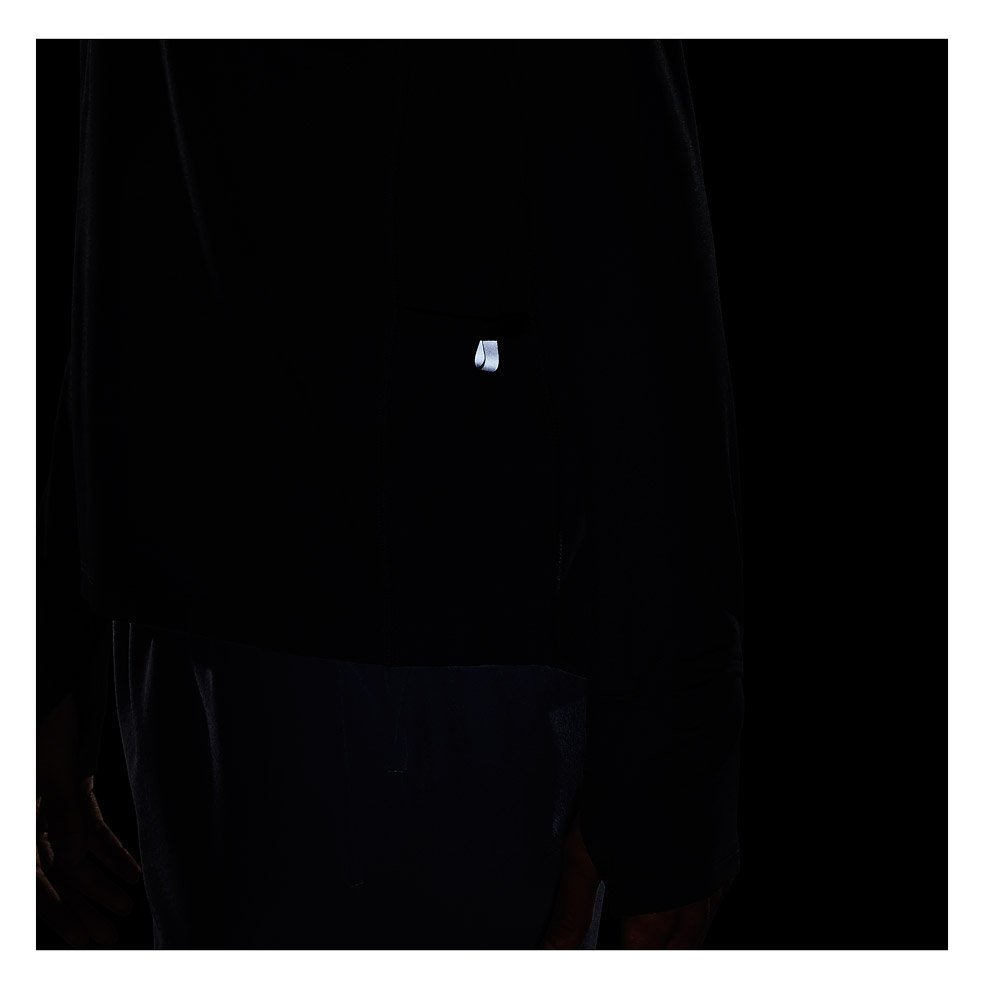 Модель хорошо отводит влагу, так как сшита из технологичной ткани Dry-Fit. Внизу рукавов прорези для больших пальцев, которые удерживают рукава на месте. Сбоку карман с клапаном для хранения мелочей.
