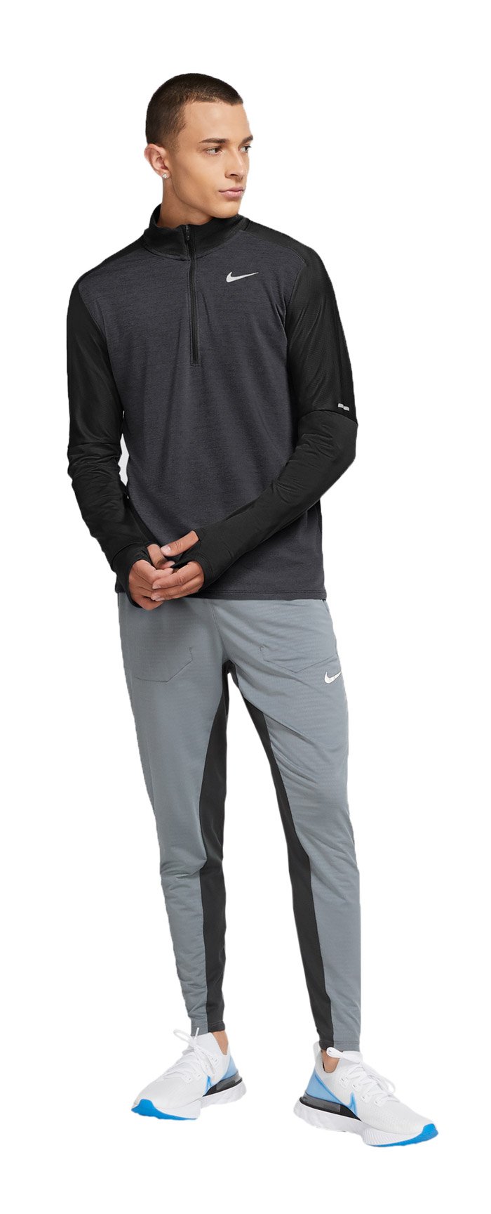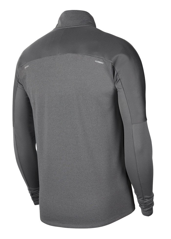 Кофта прекрасно справляется с выводом влаги, потому что сшита из технологичной ткани Dry-Fit. Эту модель отличают хорошие дышащие свойства, плечи и верхняя часть рукавов выполнены из сетчатого материала, молния до середины груди позволяет регулировать вентиляцию. Внизу рукавов прорези для больших пальцев, удерживают рукава на месте.