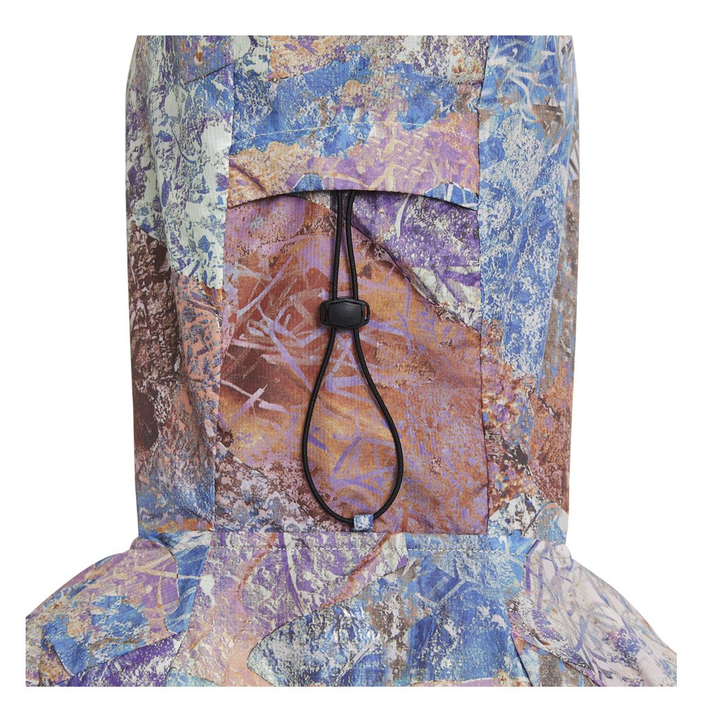 Яркая и эффектная куртка разработана специально для трейлраннинга. Легкая ткань на 75% состоит из переработанных волокон, прекрасно отталкивает влагу и не сковывает движений. Для защиты от непогоды также предусмотрен капюшон с козырьком. Его посадку можно регулировать с помощью шнурка, расположенного сзади.
