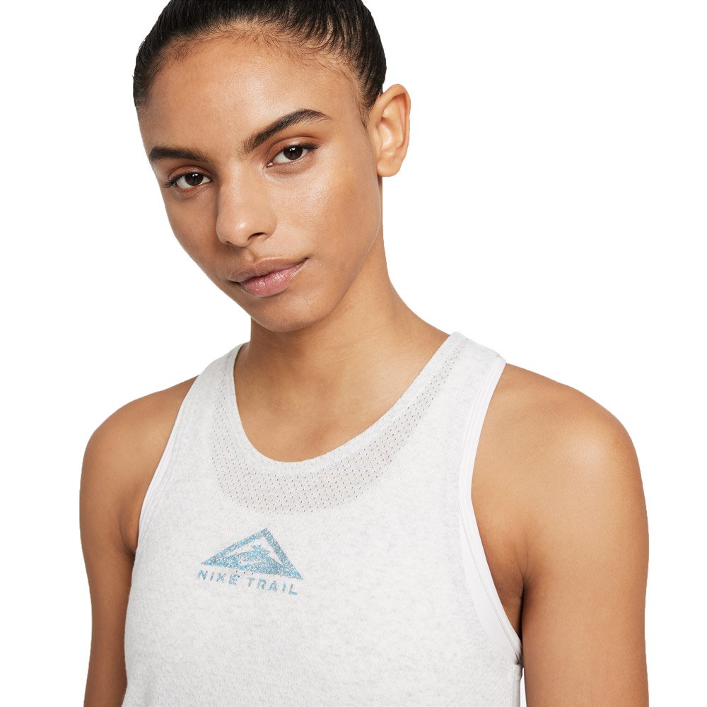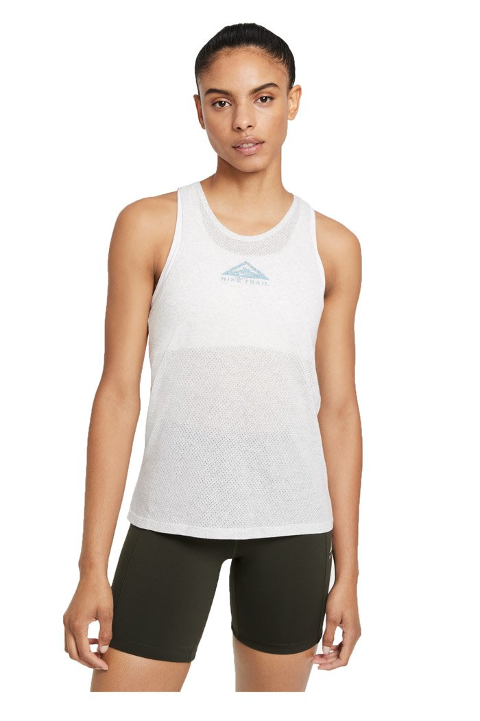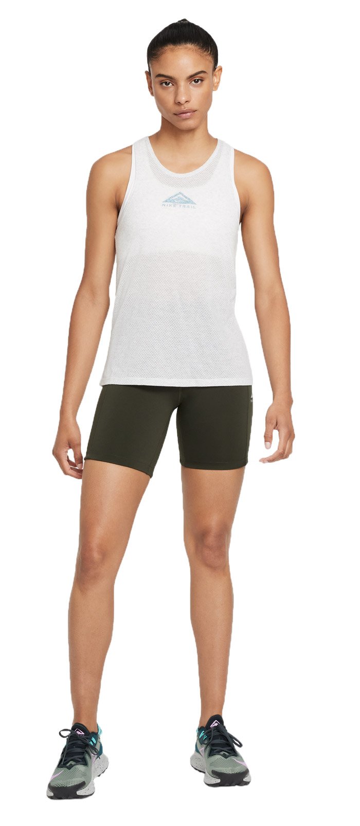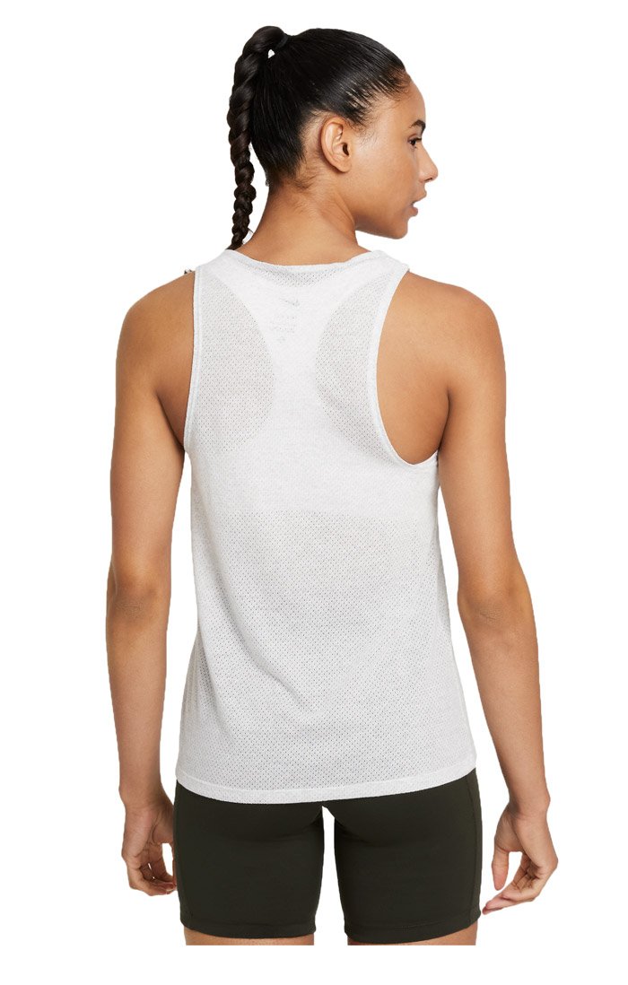 Женская майка для бега с высокими проймами и округлым вырезом. Отлично подходит для бега в жаркую погоду, так как сшита из легкой быстросохнущей ткани с технологией Dri-FIT. По бокам располагается сетка для лучшей вентиляции и охлаждения во время бега.