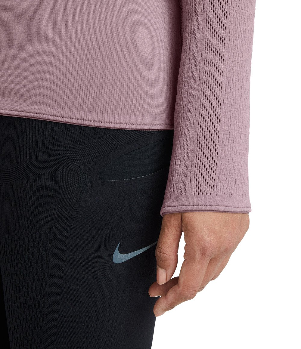Эластичная и мягкая кофта обеспечивает максимальный комфорт во время пробежки. На рукавах и на груди используется перфорированная ткань джерси double-knit, которая способствует дополнительной вентиляции и гарантирует свободу движений. Гладкий трикотаж на спине создает ощущение легкости и прохлады.