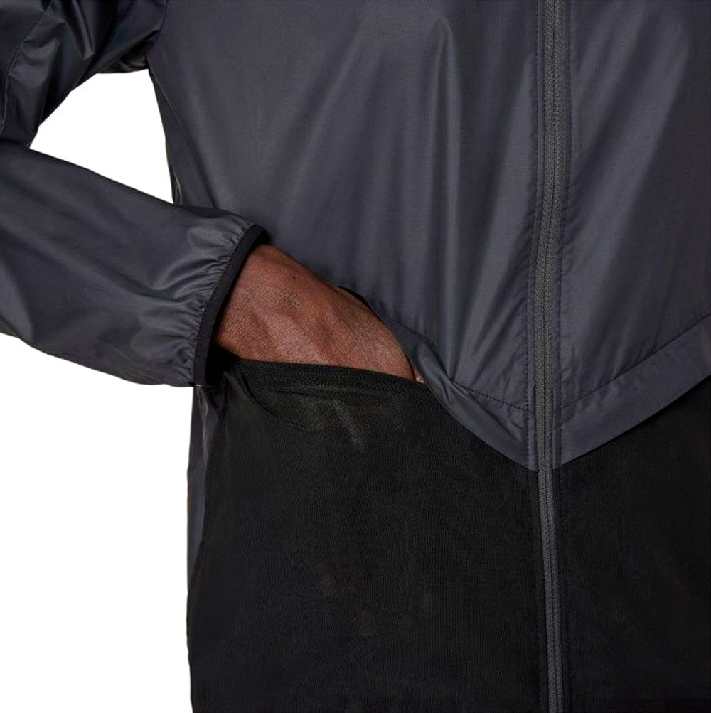 Вдоль культового шеврона на груди расположены потайные карманы-конверты. В них можно захватить на тренировку важные мелочи. Также предусмотрены боковые карманы на молнии и один сзади, куда удобно складывать саму куртку, когда в ней нет необходимости.
