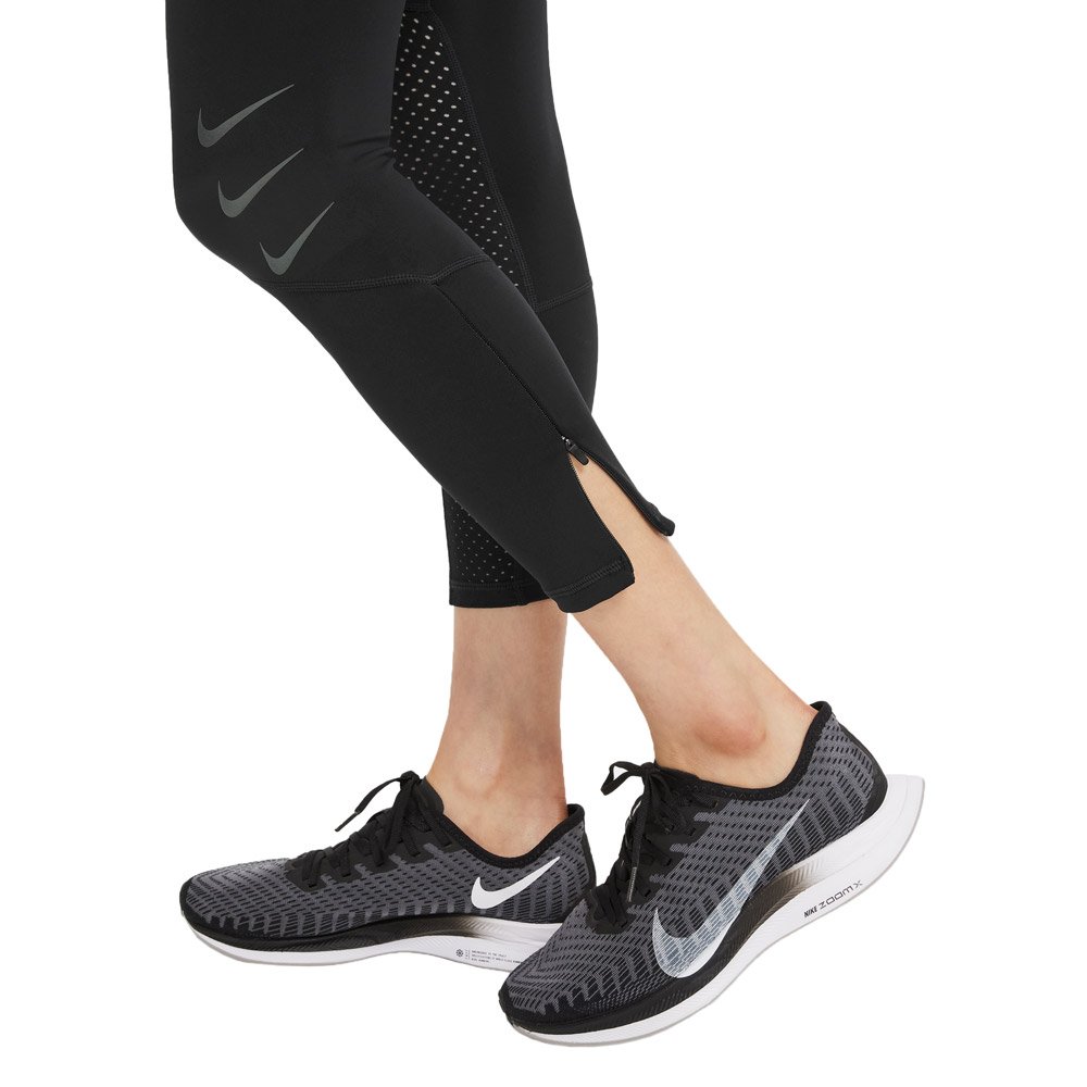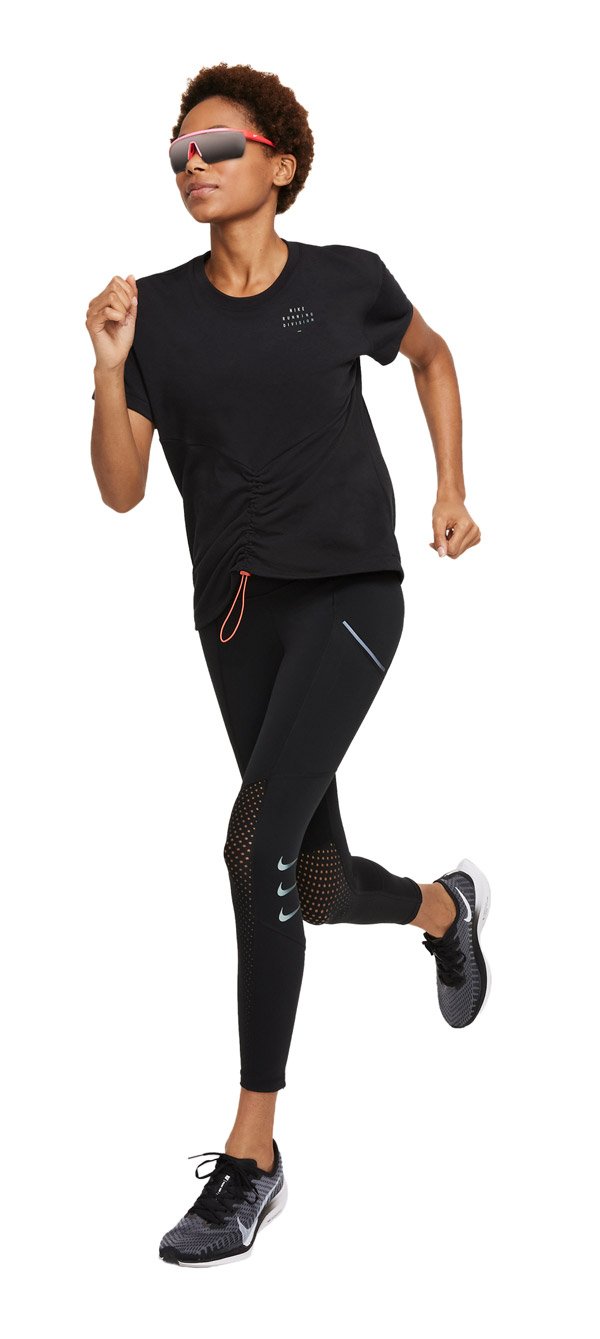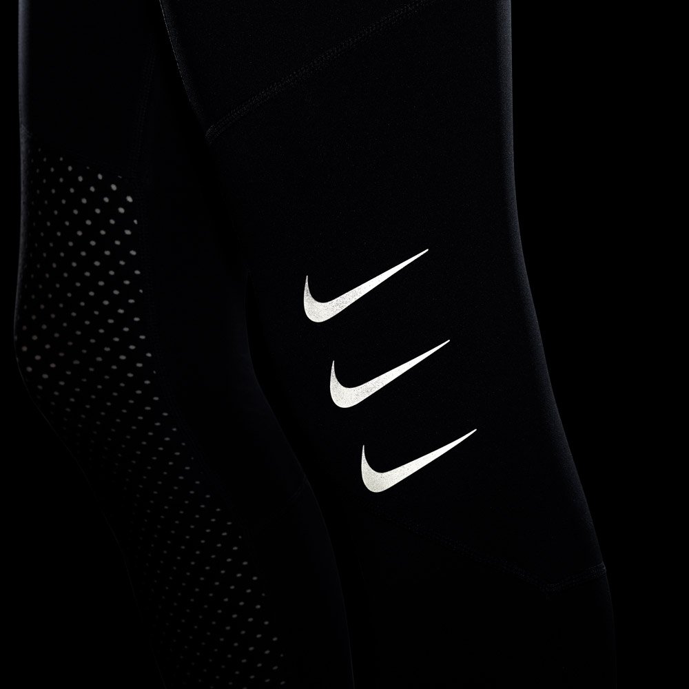 Беговые тайтсы с легкой компрессией относятся к коллекции Luxe, а это значит, что они выполнены из самых высококачественных материалов. Мягкая воздухопроницаемая ткань Stealth Evaporation с технологией Nike Dri-FIT ADV мгновенно распределяет влагу, предотвращая появление пятен и разводов, обеспечивает быстрое высыхание и максимальный комфорт. Водоотталкивающее покрытие DWR защищает от дождя и мокрого снега. Перфорация в области голени создает дополнительную вентиляцию.
