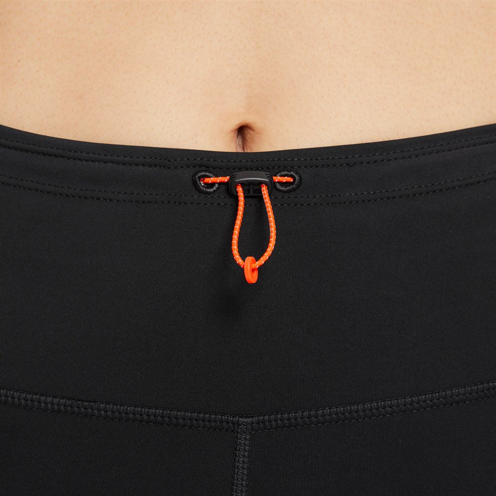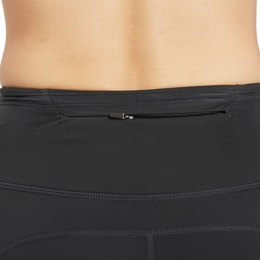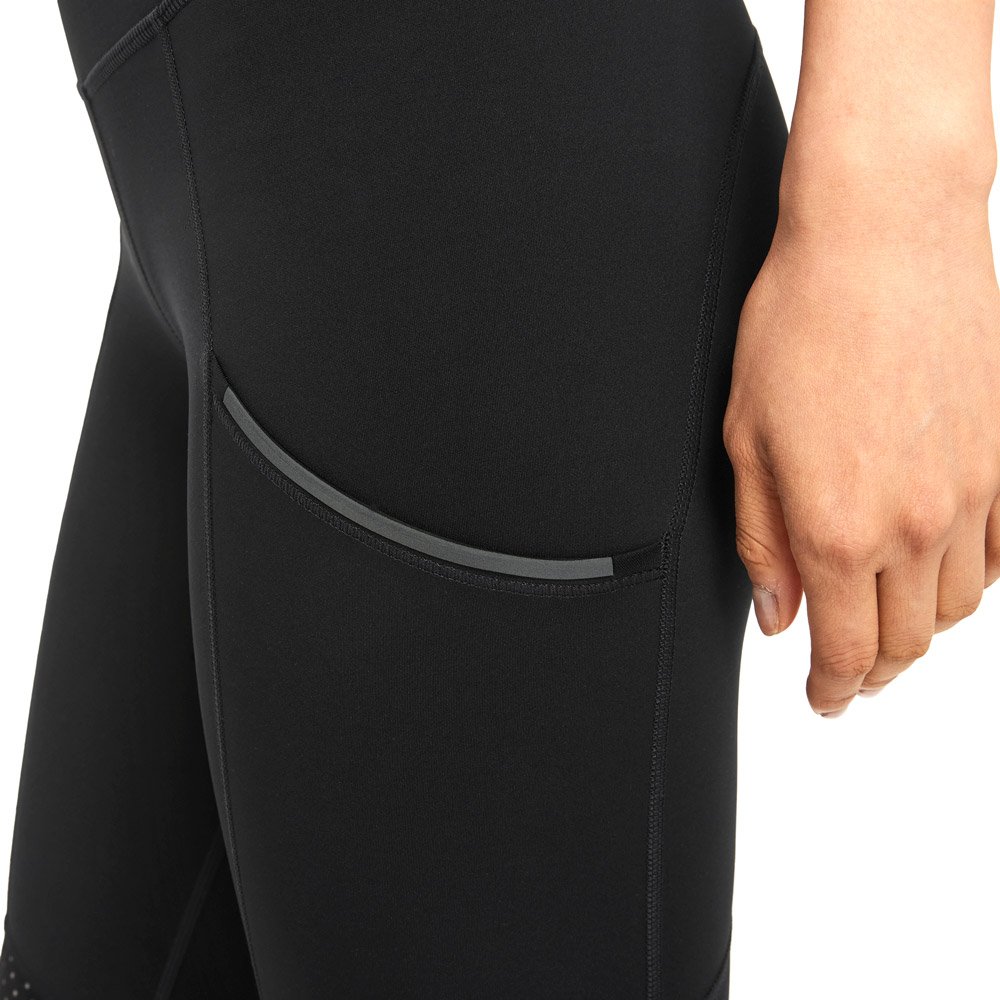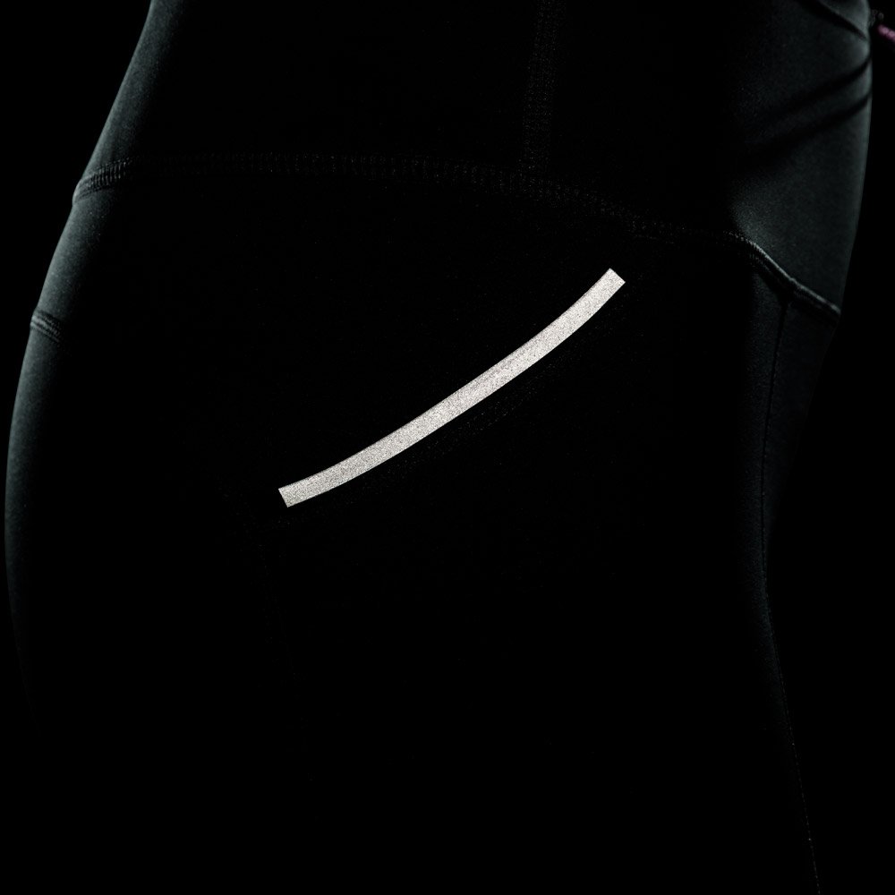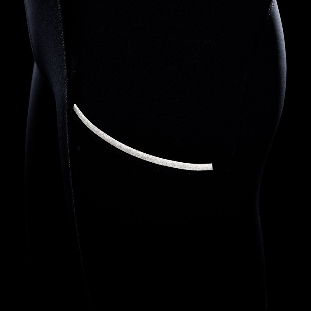 Благодаря поясу средней высоты и шнурку с фиксатором посадку можно легко регулировать. Светоотражающие элементы повышают безопасность тренировок в темное время суток.