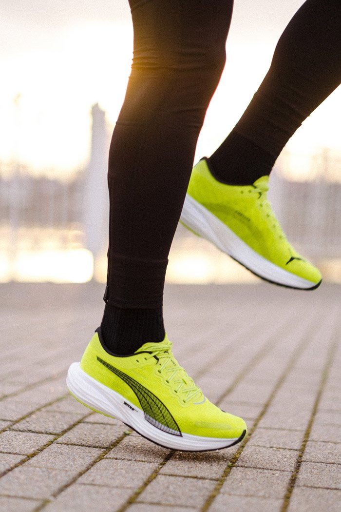 Бесшовный верх выполнен из двухслойного материала: внутри использована мелкая сетка, снаружи - сетка различной плотности, обеспечивающая превосходную вентиляцию и сохранение комфортной температуры. Во второй версии Deviate Nitro предусмотрена дополнительная набивка, а использование вокруг лодыжки материала с увеличенным сцеплением предотвращает проскальзывание пятки. Внутренняя сторона кроссовка оборудована ламинированным элементом PWR Tape для поддержки и стабилизации стопы.