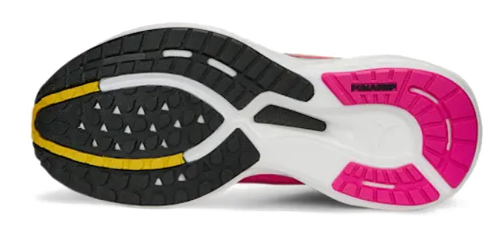 Подошва выполнена из более прочной, чем в предыдущей версии, резиновой смеси PumaGrip ATR и оборудована протектором с универсальным рисунком, подходящим как для твердых покрытий, так и для суровых условий и бездорожья.
