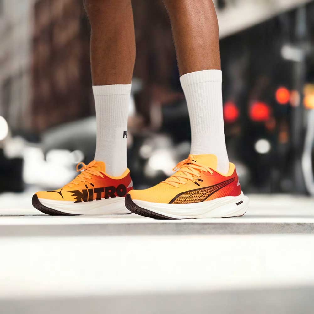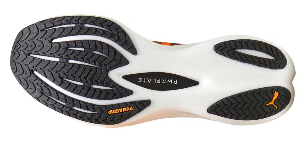 Ключевой особенностью данной модели является пластина из углеродного волокна PWRPlate в подошве - она улучшает возврат энергии и повышает эффективность бега. Протектор подошвы, выполненный из высококачественной резины PumaGrip, гарантирует высокий уровень сцепления с любой поверхностью, будь то асфальт или грунтовые тропинки.