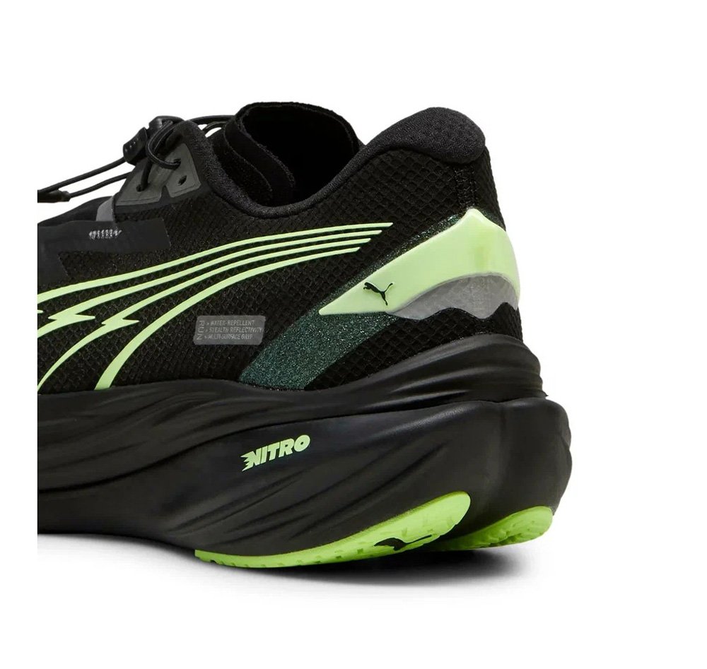 Конструкцией предусмотрен защитный чехол для шнурков, который предотвращает их наматывание и загрязнение. Этот элемент помогает поддерживать аккуратный вид обуви и обеспечивает дополнительную безопасность во время бега. Ламинированные накладки в местах интенсивного износа, защищают кроссовки от повреждений, что увеличивает срок службы обуви. Инновационная резиновая подошва PumaGrip обеспечивает отличное сцепление и устойчивость на ра
