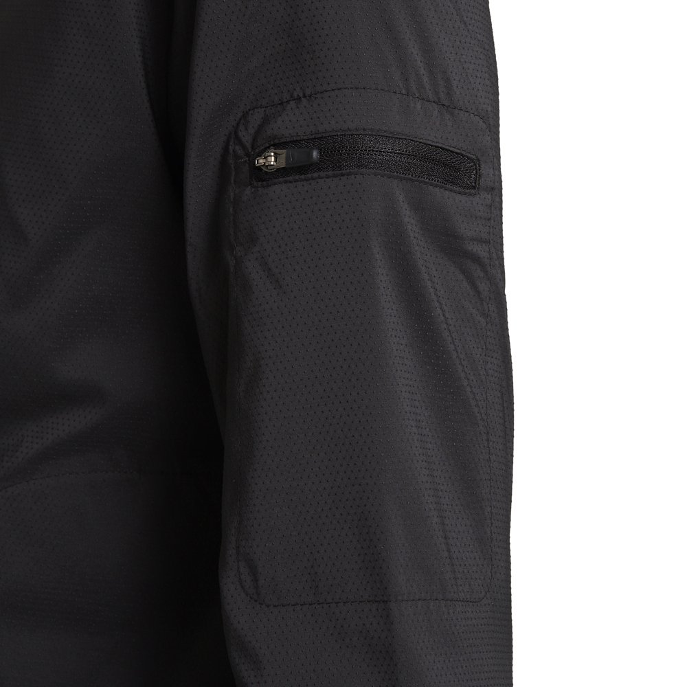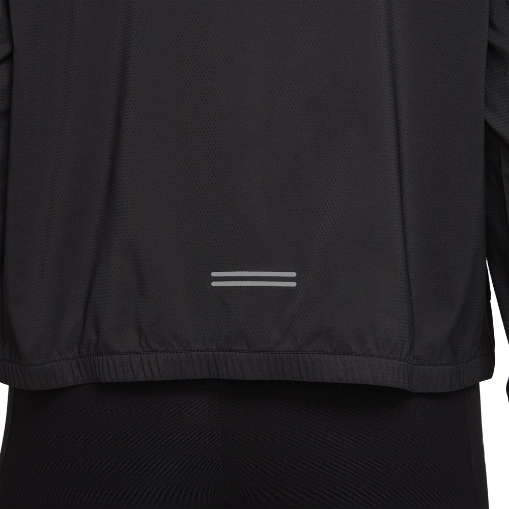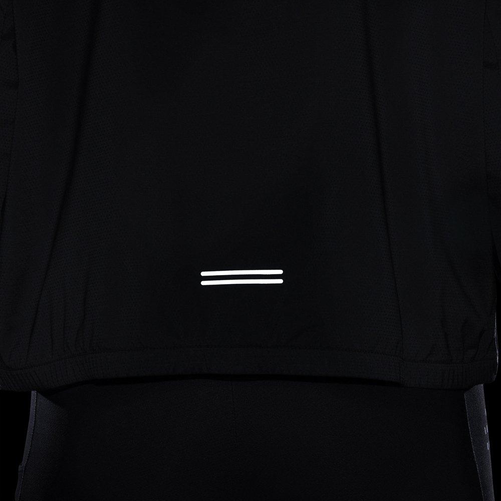 Легкая куртка из переработанных материалов с защитой от ультрафиолета. Регулируемый кулиской капюшон защищает от ветра и осадков. В боковых карманах можно хранить необходимые на пробежке мелочи. Имеется карман на молнии на рукаве, в котором можно хранить гели или батончики. Светоотражающие элементы повышают уровень безопасности в темное время суток.