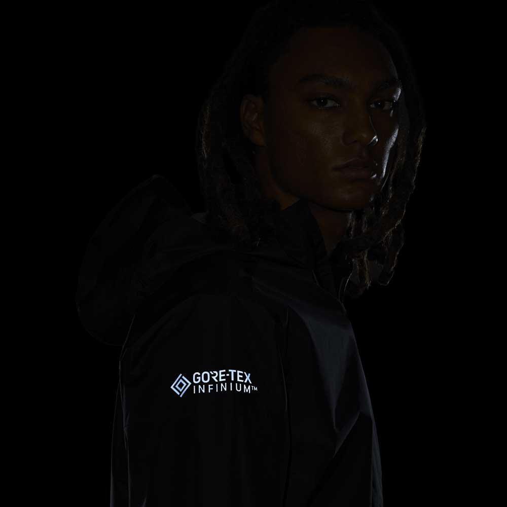 Куртка Nike Trail с мембраной Gore-Tex Infinium™ и полностью герметичными швами позволяет чувствовать себя комфортно на тренировках в любую погоду, надежно защищая от дождя и ветра.