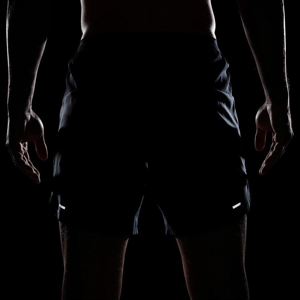 Эластичный пояс с внутренним шнурком гарантирует комфортную посадку, а задний карман на молнии позволяет удобно разместить мелкие вещи во время тренировки. Предусмотрены светоотражающие элементы для повышения безопасности тренировок в темное время суток.